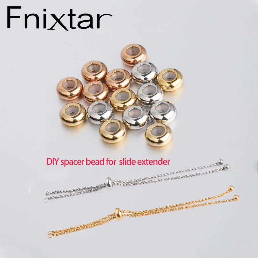 Fnixtar 100 шт.лот 8 мм разделительные бусины из нержавеющей стали с резиновым сердечником бусины с внутренним позиционированием для изготовления браслетов своими руками