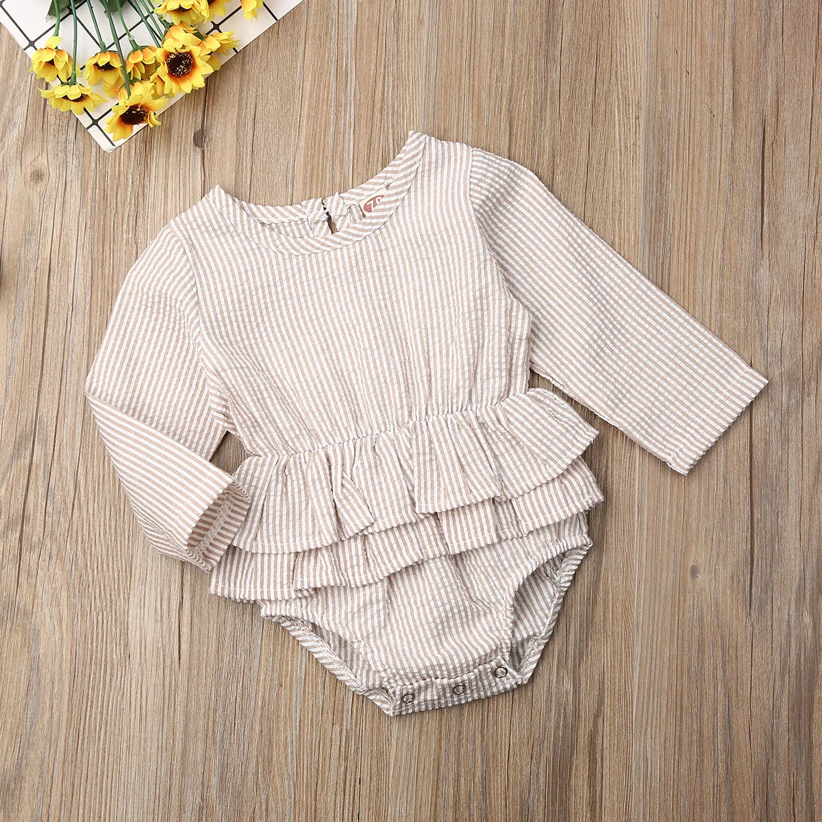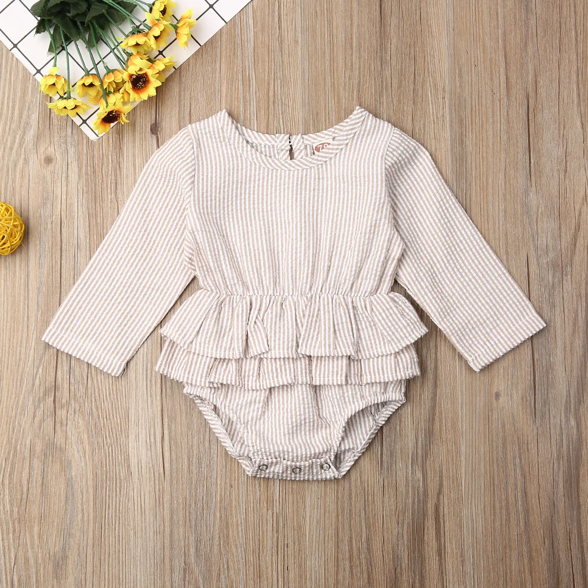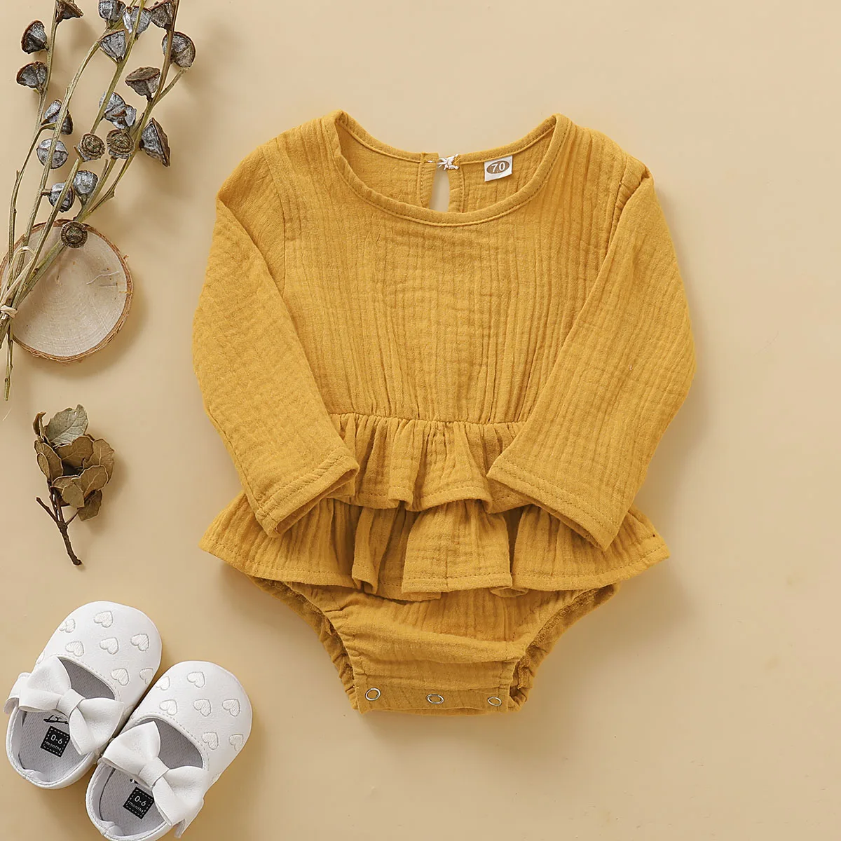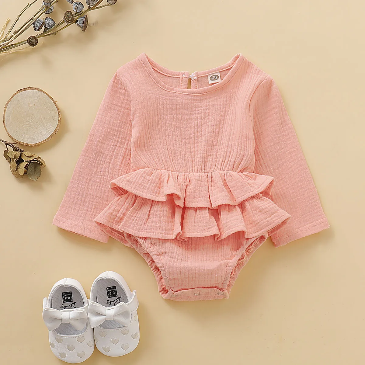 Pudcoco, Одежда для новорожденных девочек, однотонный комбинезон с длинным рукавом и оборками, комбинезон, наряд, одежда из хлопка и льна