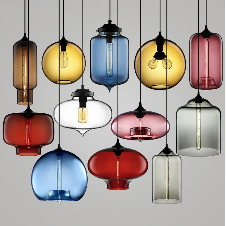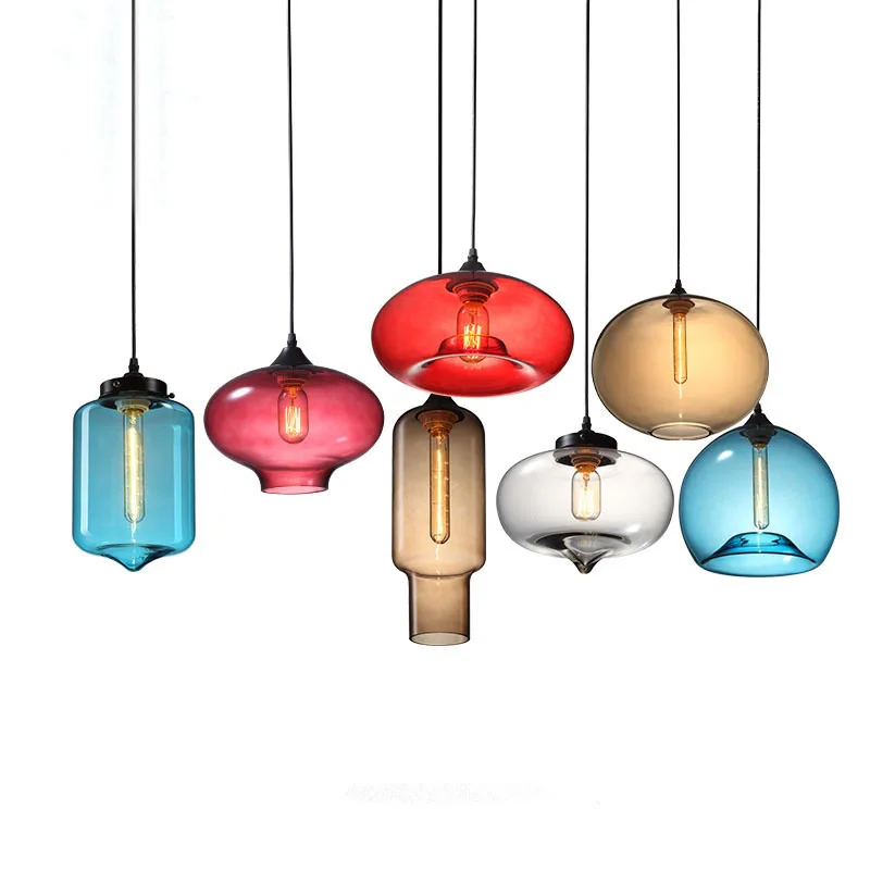 Цветные стеклянные подвесные светильники 7 цветов на выбор, подвесной светильник для ресторана, бара, спальни, подвесной светильник, украшение для дома, лофт, освещение