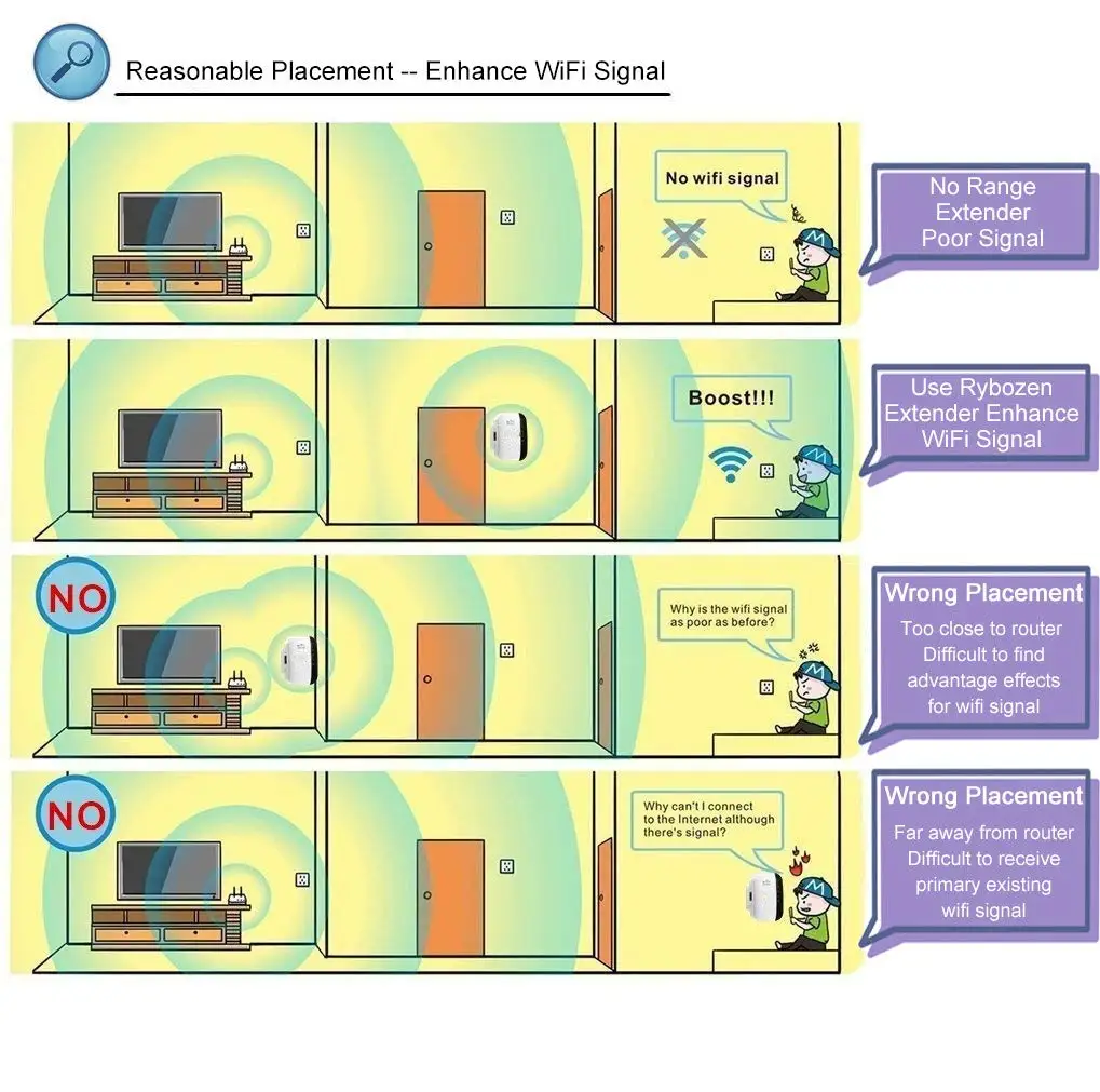 Беспроводной в беспроводной: После получения беспроводного сигнала от оригинального беспроводного маршрутизатора ретранслятор повторно передает новый беспроводной сигнал для достижения эффекта увеличения и расширения покрытия. Совместимость со всеми беспроводными маршрутизаторами (необходимо знать имя пользователя и пароль беспроводного сигнала), Настройка очень проста. Продукт поставляется с инструкциями. Мобильные телефоны, компьютеры и планшеты могут быть установлены, нужно только установить один раз, все беспроводные устройства могут быть использованы.