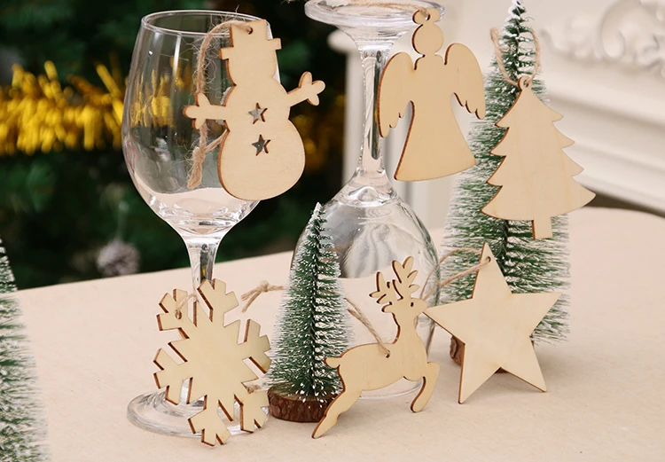 Деревянные снежинки, рождественские украшения, звезды, ангелы, необработанные деревянные вырезы, ломтики для рукоделия и декора рождественской елки, 10 шт.