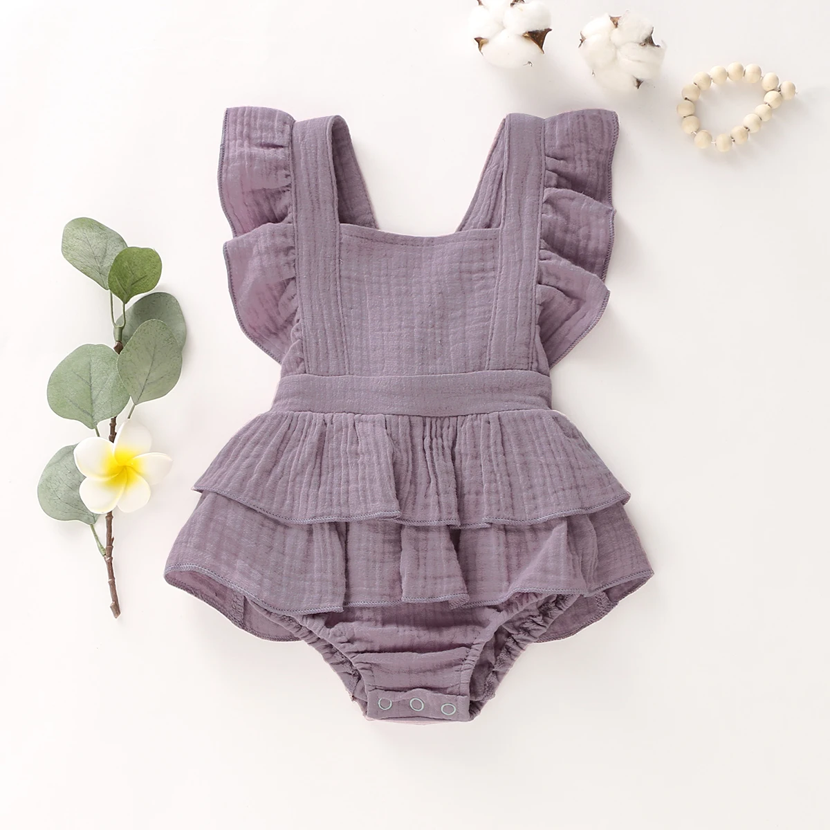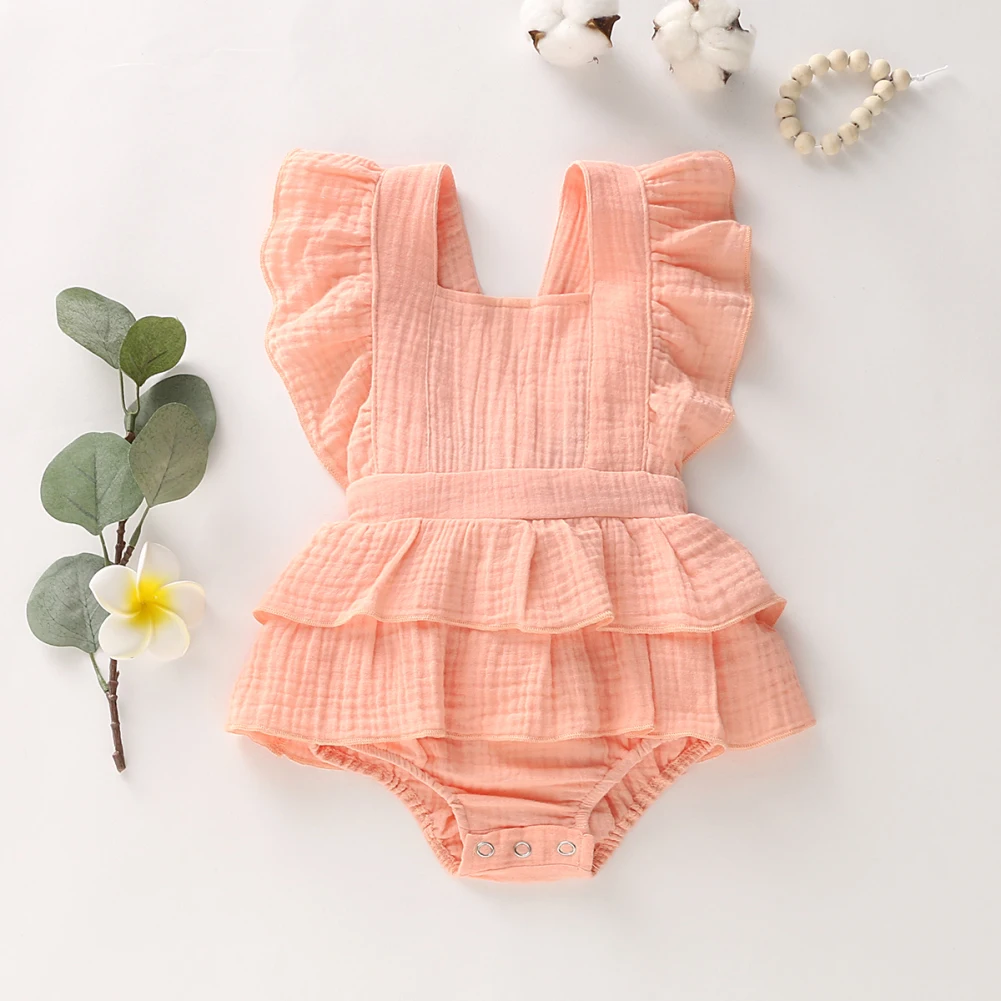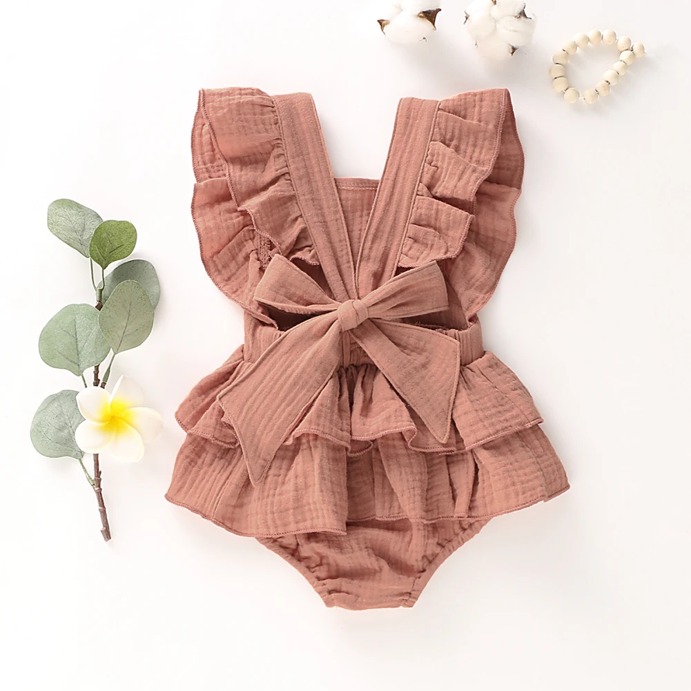 Комбинезон для новорожденных девочек 4 цветов, летние однотонные хл...