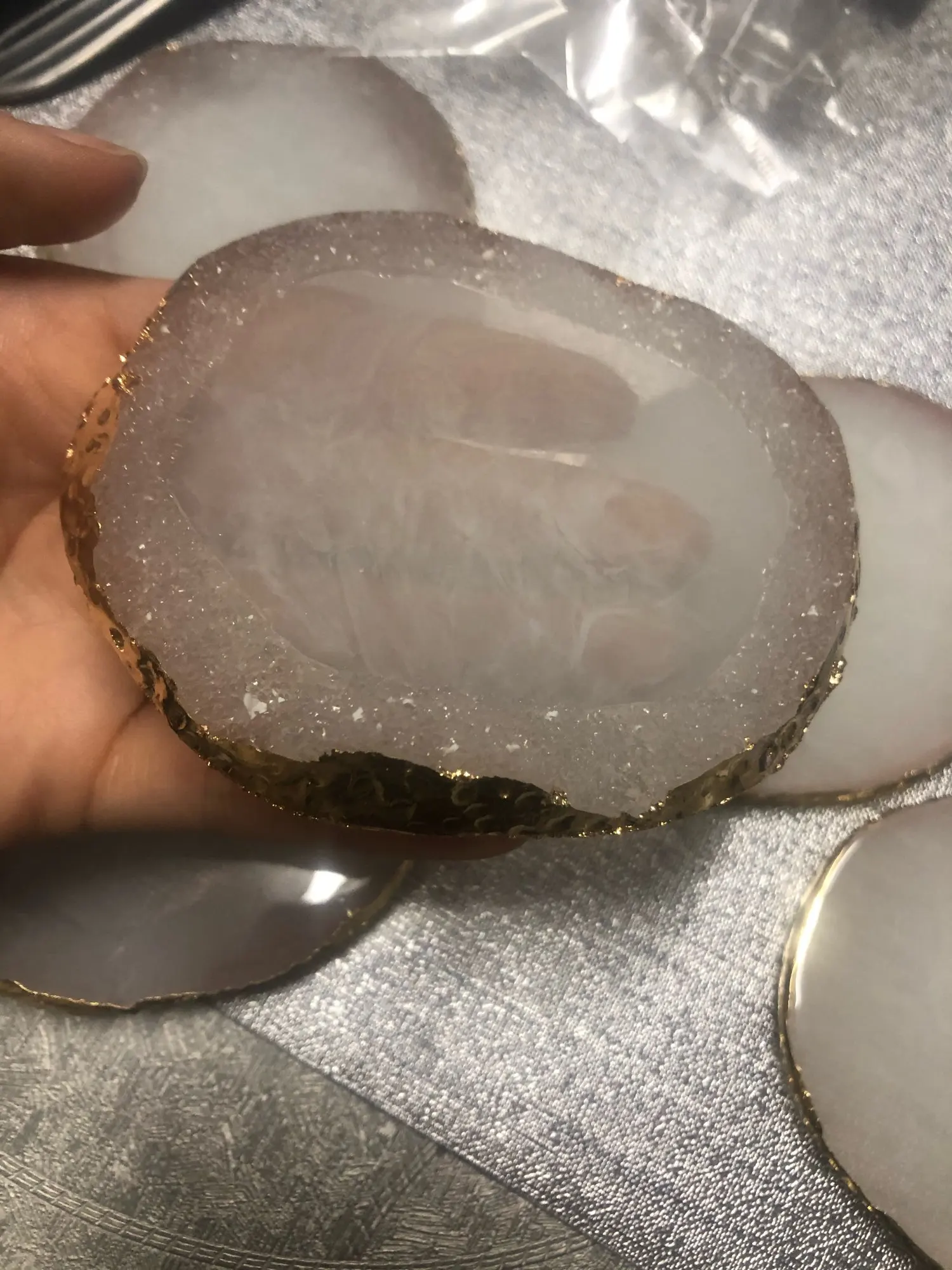 Покупайте, чтобы служить в качестве подстаканника, но, к сожалению, очень высокая цена за качество, старый пластик, который делает удар очень tchip, пока он продается как «камень» Золотой контур-это плохо сделано, и 6 не являются odentious, есть некоторые, кто не кладет все в плоскую поверхность, чтобы положить стекло не очень стабильное. Повреждения
