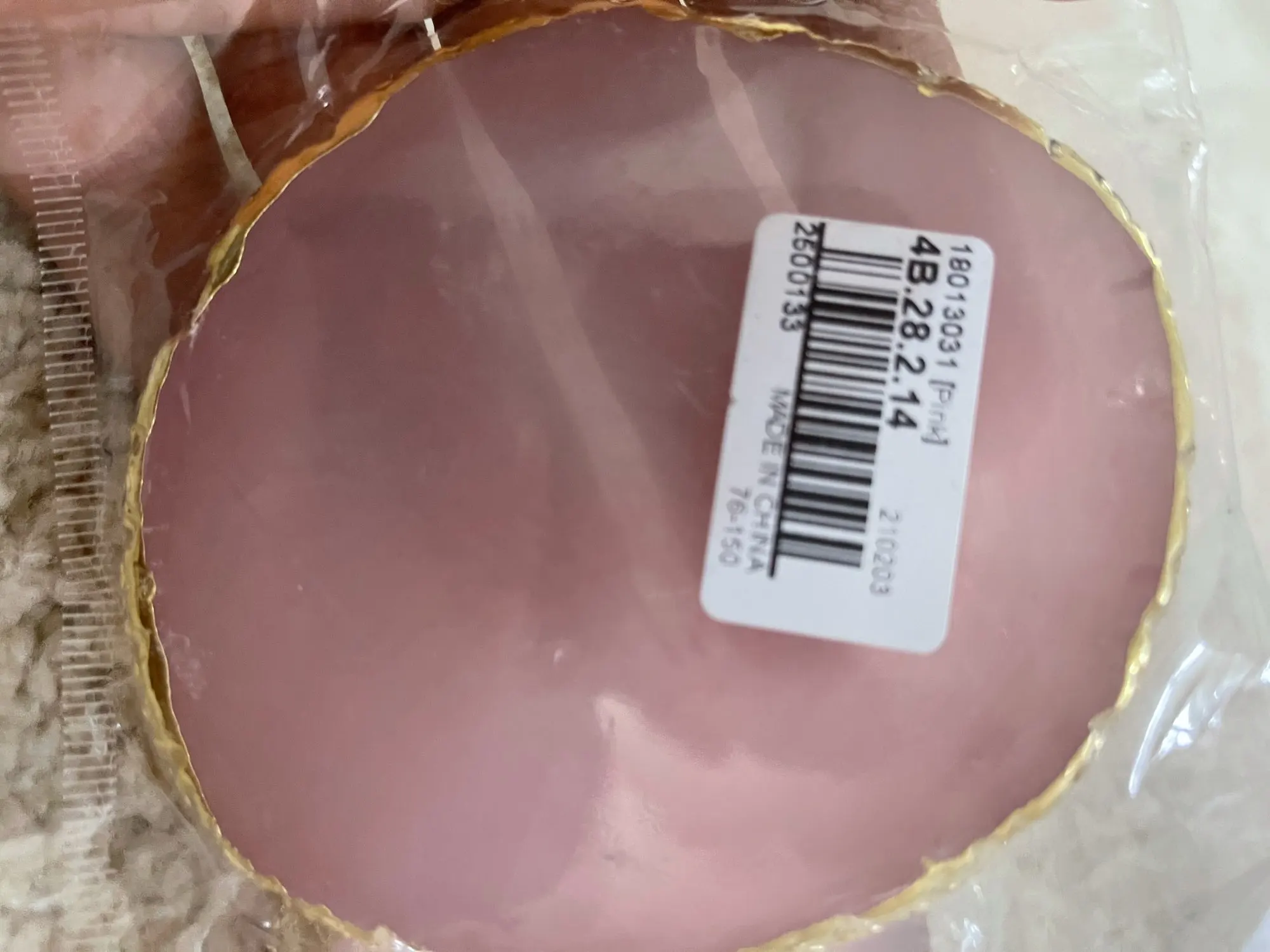 Заказывала две подставки - розовую (которая очень отдалённо соответствует картинке) и белую. Не смотря на то, что продавец один, подставки разные по размеру и текстуре на обороте - белая гладкая, розовая с какими-то выпуклыми полумесяцами и крестом. Заказала в первых числах января, посылка пришла в начале марта, на последних сроках доставки. Посылка не отслуживалась.