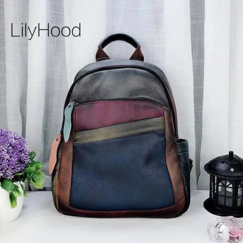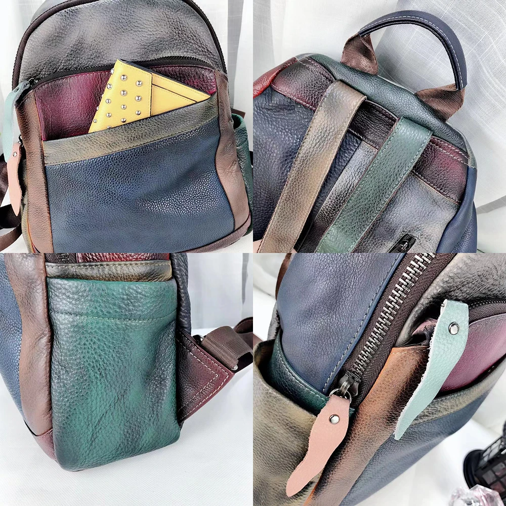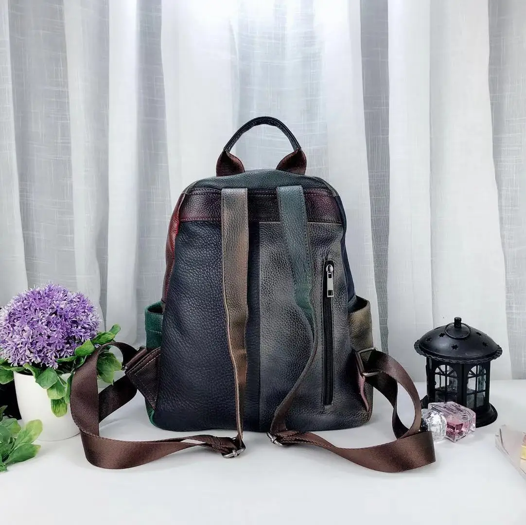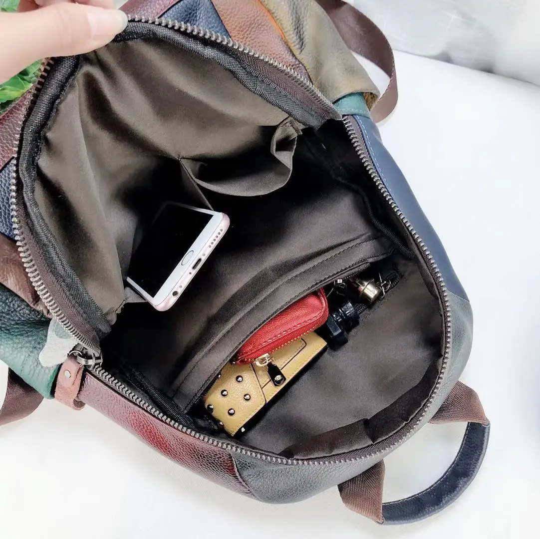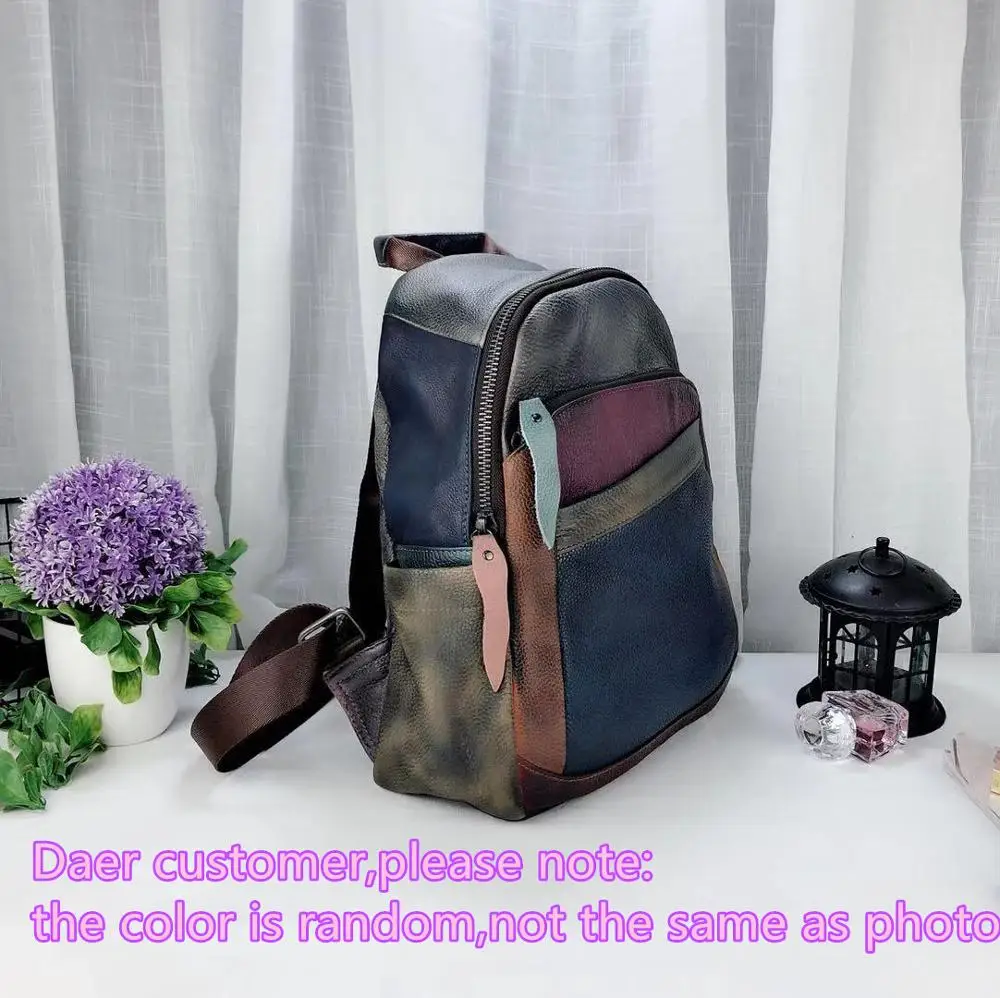 Женский рюкзак из натуральной кожи с начесом, винтажный стиль, разноцветный лоскутный рюкзак, женская сумка из натуральной кожи, школьная сумка