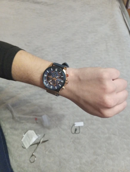 Очень хорошие часы по цене. 2 незначительные вещи, которые я замечал, вторая рука не выстраивается «совершенство» с шагом в 5 минут (та же проблема на всех 3 моих текущих часах), а ремешок «кожа» ощущается дешево. Но все это очень небольшие ошибки на очень дешевых часах, и я бы не удивился, если бы я увидел идентичные часы у ювелирных изделий за пару сто долларов; И я тоже буду платить, если не знаю о AliExpress! Спасибо!