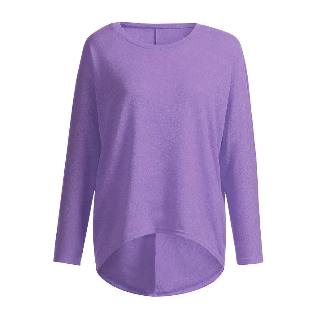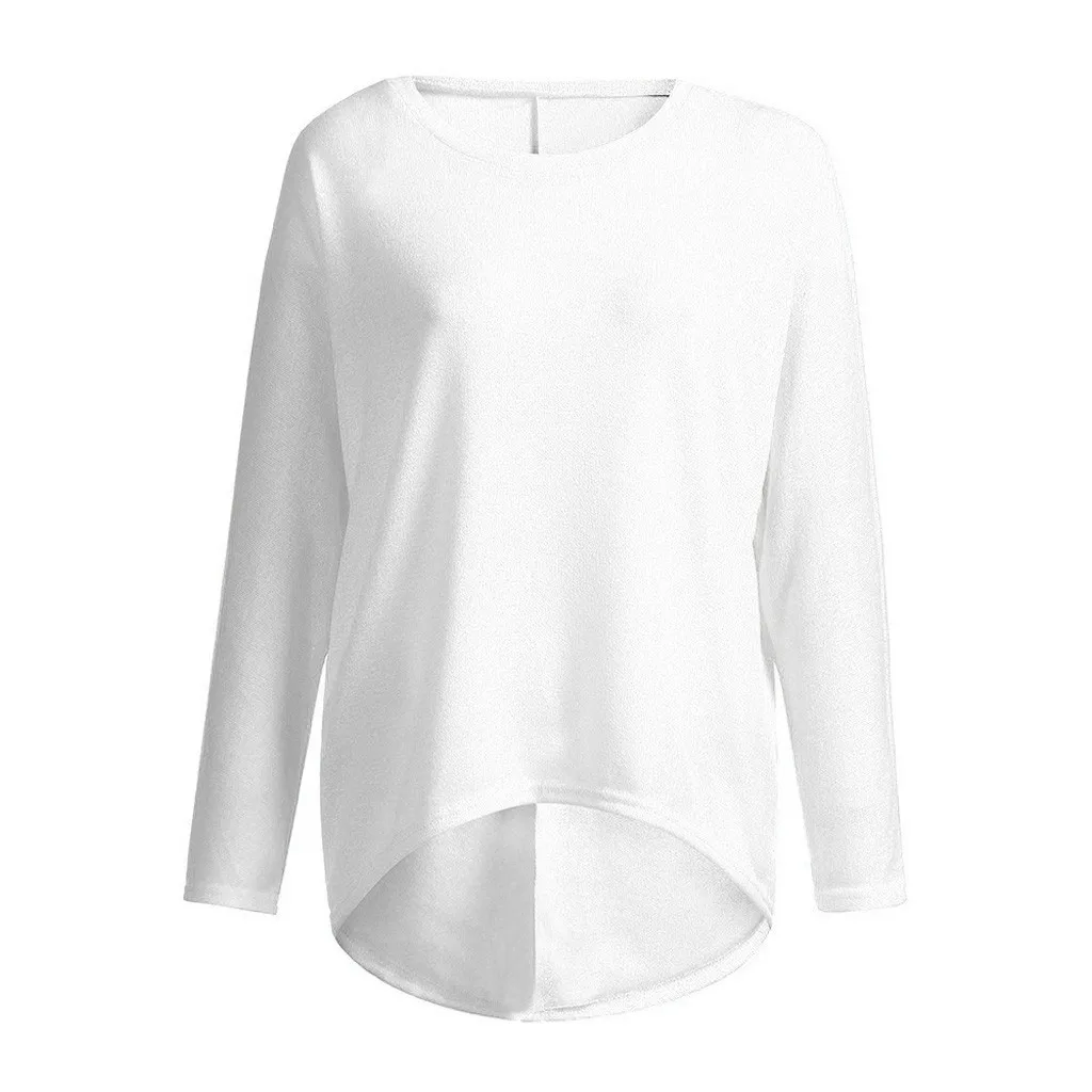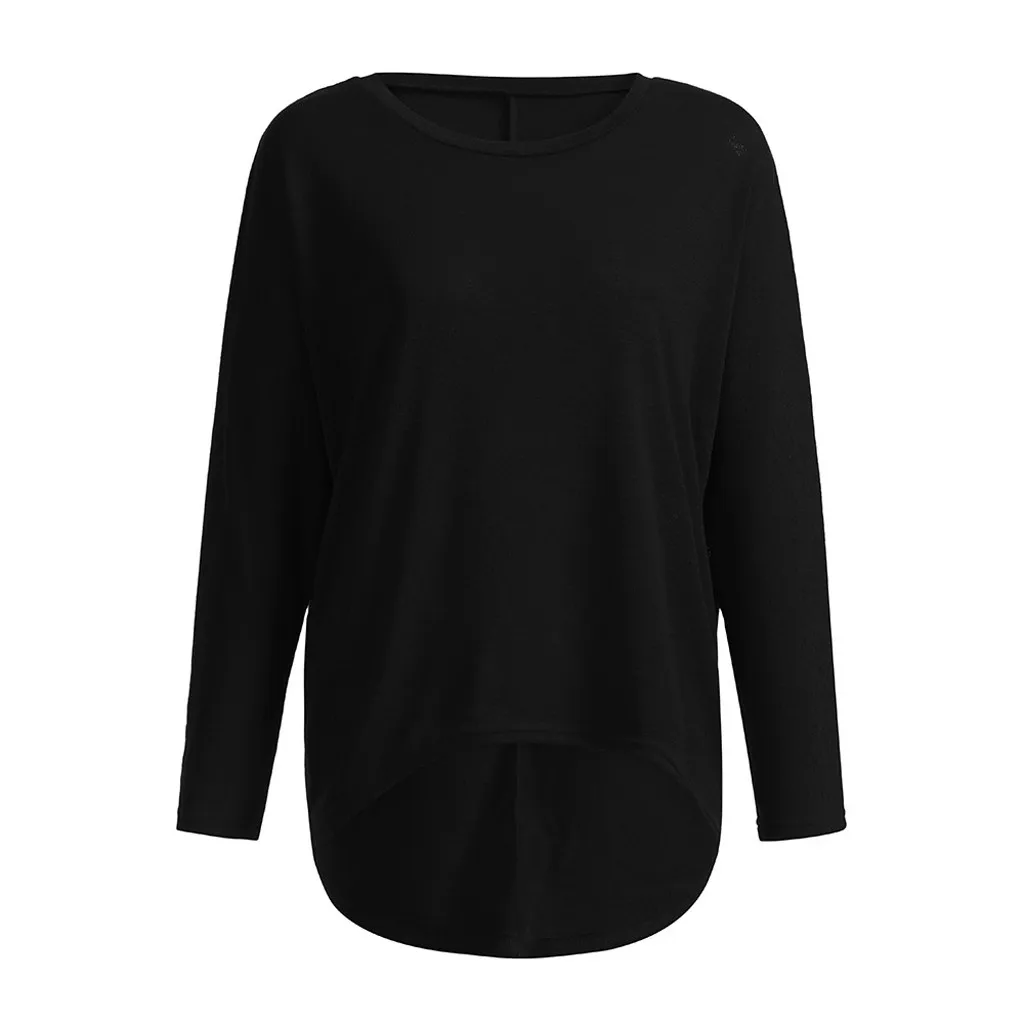 Женская Осенняя однотонная Повседневная Блузка с длинным рукавом и круглым вырезом