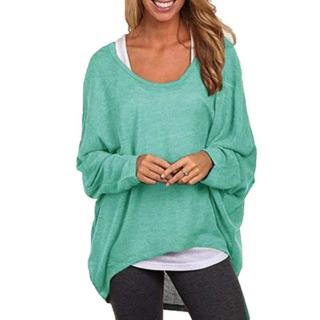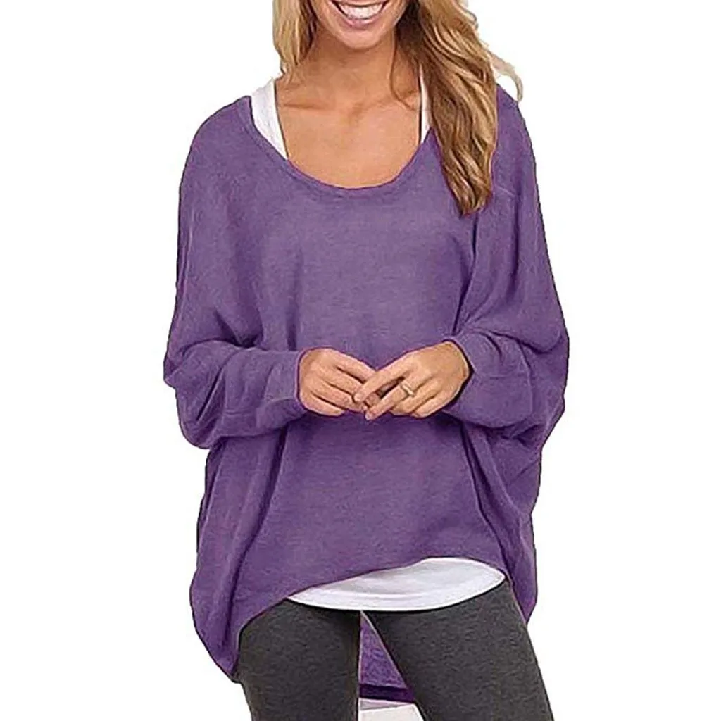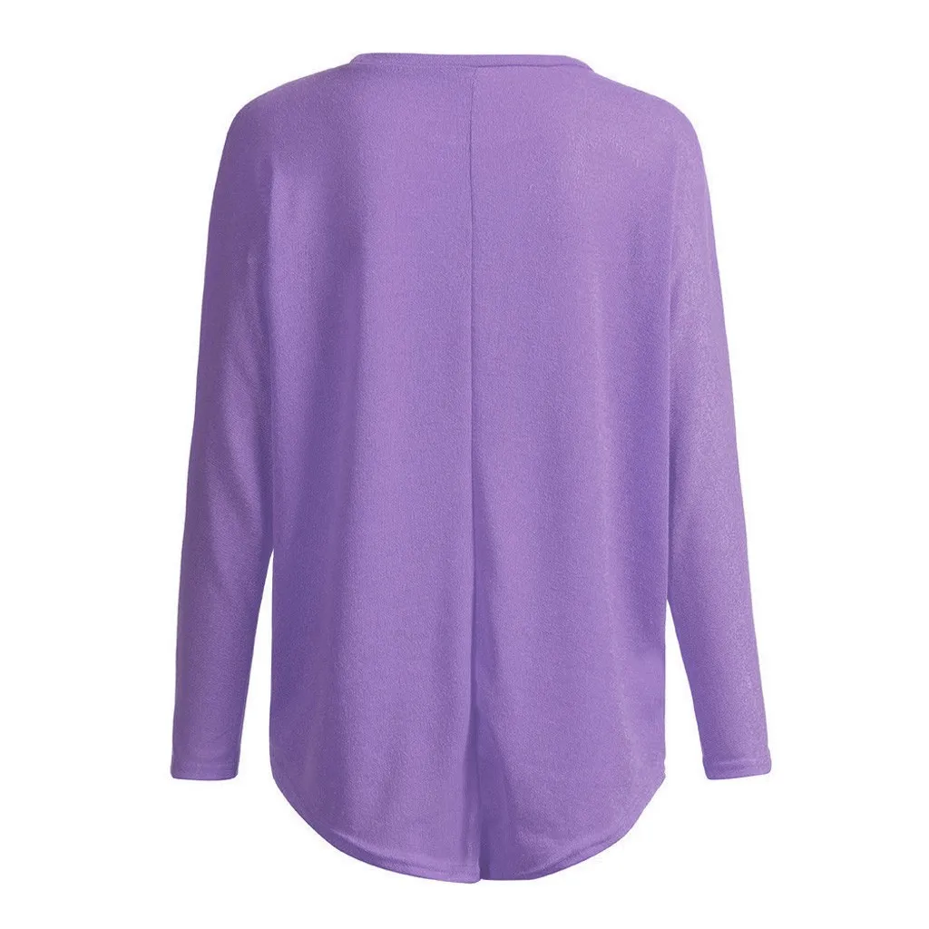Женская Осенняя однотонная Повседневная Блузка с длинным рукавом и круглым вырезом