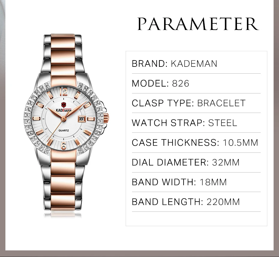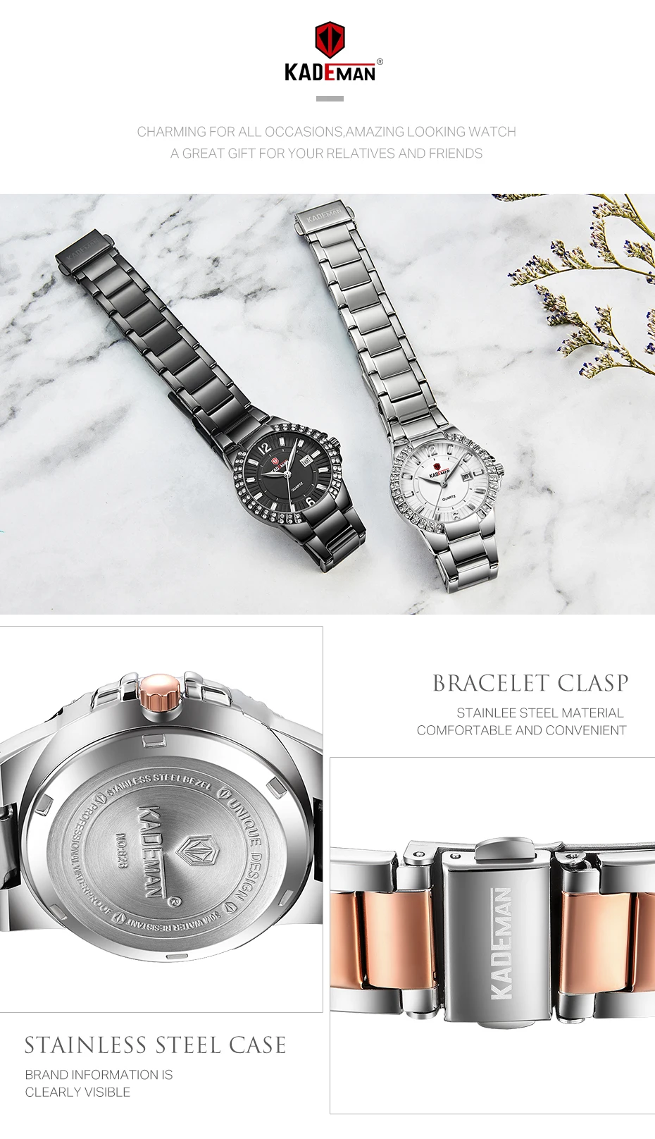 Роскошные женские наручные часы, великолепные водонепроницаемые часы с кристаллами, платье, часы высокого качества, фирменный дизайн, часы KADEMAN, новые модные женские часы