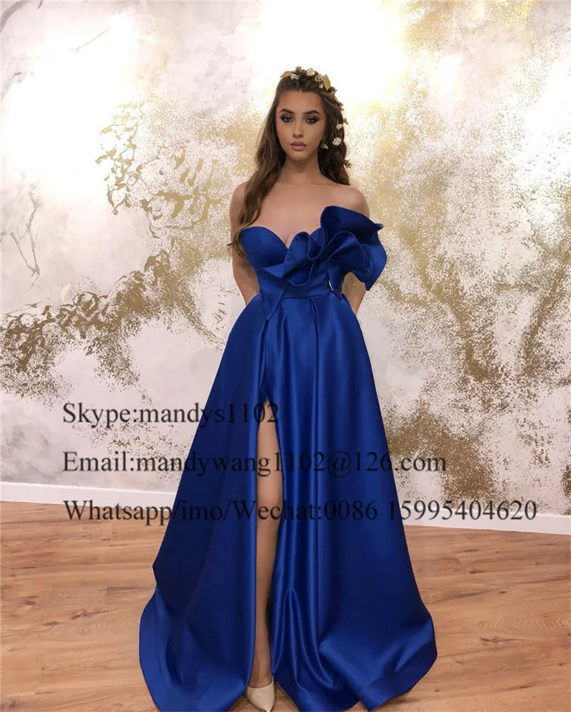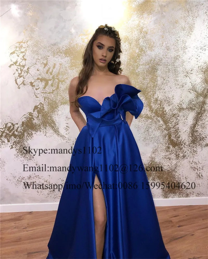 Милое Королевское синее платье для выпускного вечера, длинное с карманами, вечернее платье трапециевидной формы в африканском стиле для женщин, с высоким разрезом, Vestidos de gala