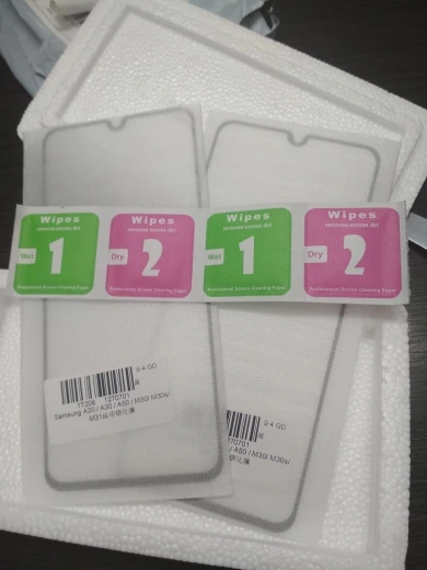 Хорошие стекла. Пришло хорошо упаковано. рекомендую. На самсунг А50 все чётко подошло. В коробке, также были салфетки. Единственное не было липкой бумаги для удаления пылинок, в связи с чем испортил одно стело( остались пылинки, пришлось выкинуть.