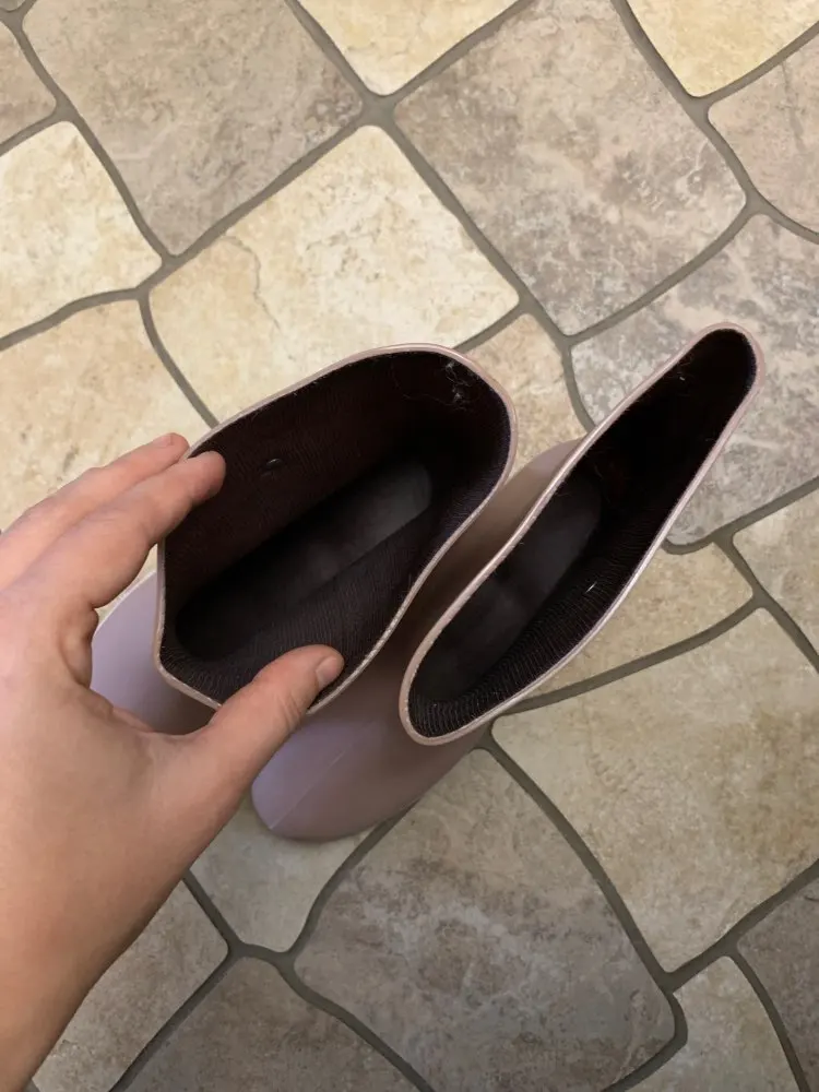 Очень красивые непромокаемые сапоги. Очень тонкий на подошве.