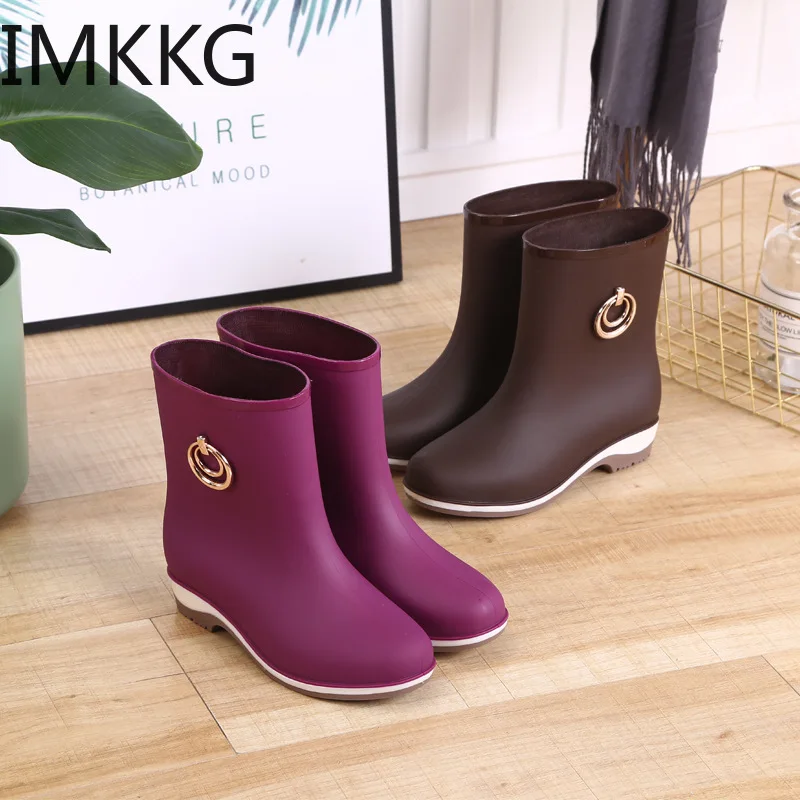Женские резиновые сапоги, Осенние, водонепроницаемые, Короткие