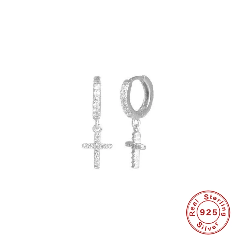 Женские серьги в стиле панк из стерлингового серебра 925 пробы, золотистые серьги с цирконами для девушек, серьги для пирсинга костей, мужские подвески в виде креста, R5