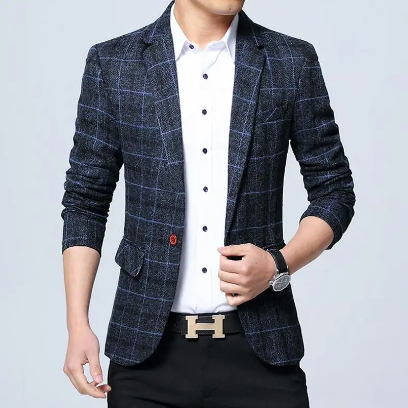 Новые мужские блейзеры, приталенные костюмы для мужчин, деловой Бле...