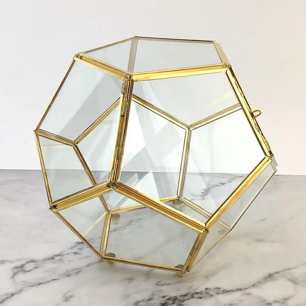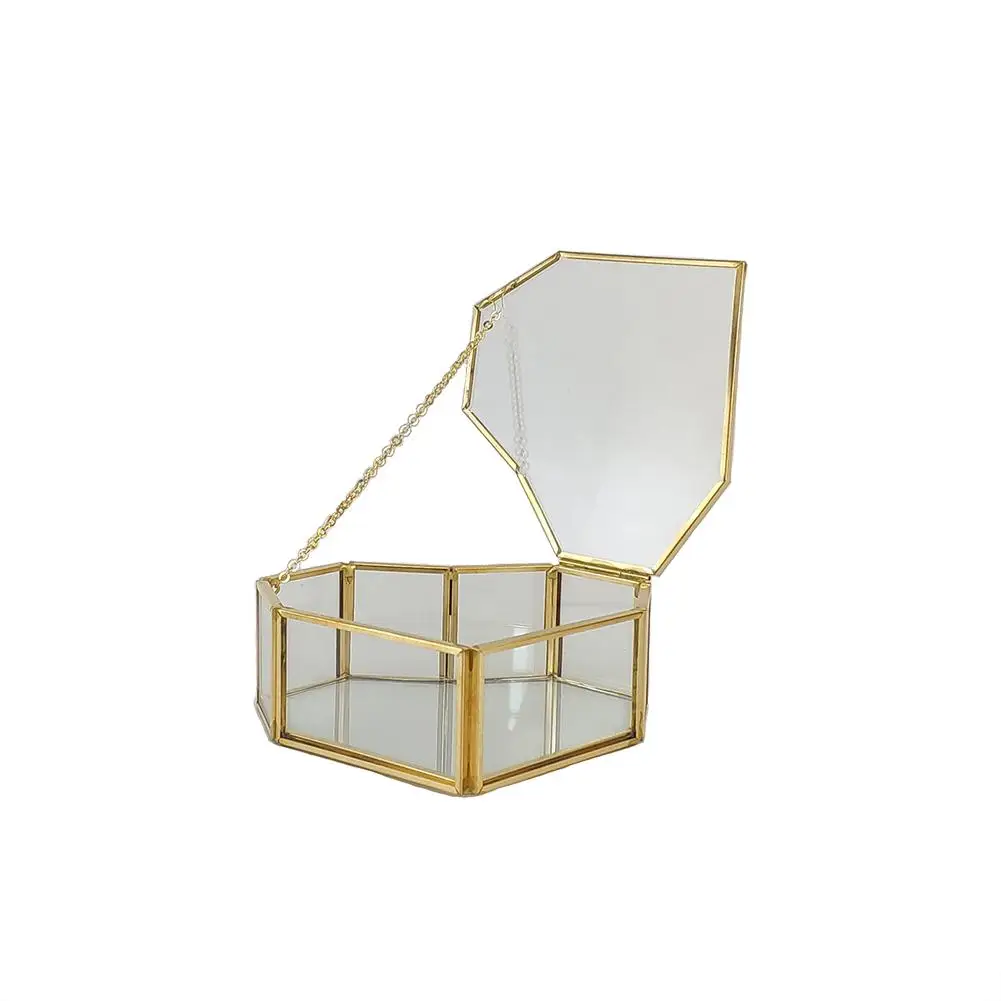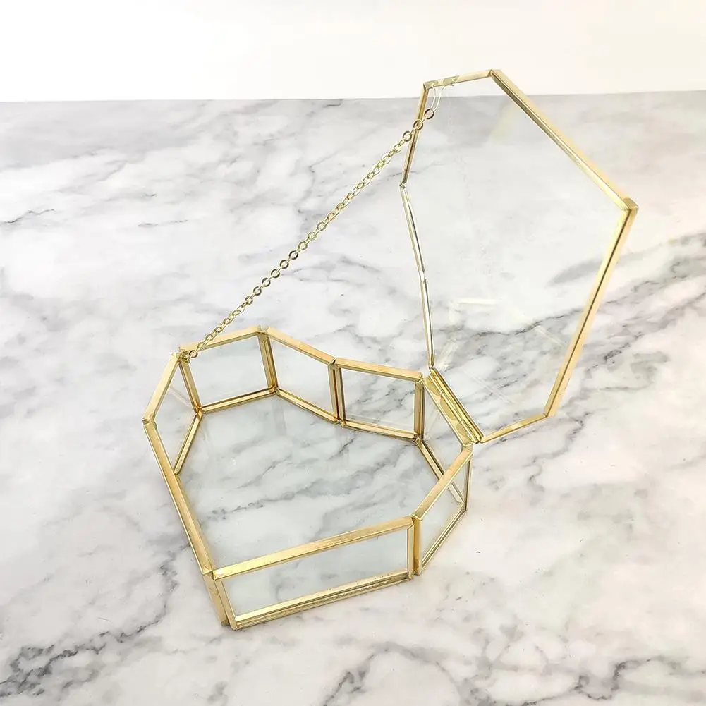 Шкатулка для ювелирных украшений из прозрачного стекла с геометрическим рисунком, настольный органайзер для хранения украшений, колец, цепочек с сокровищами