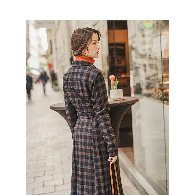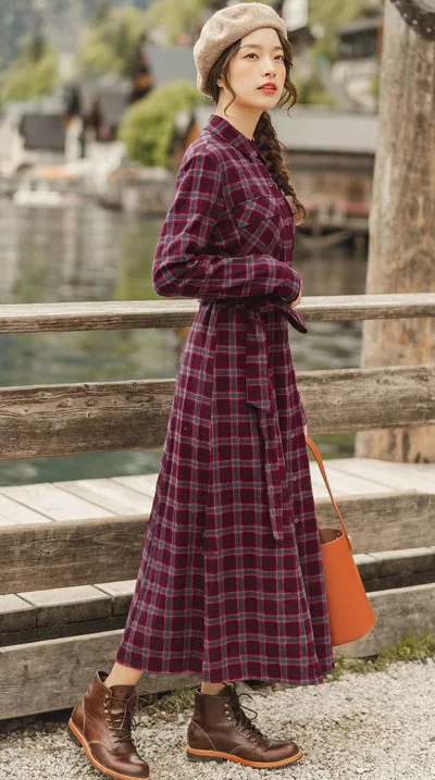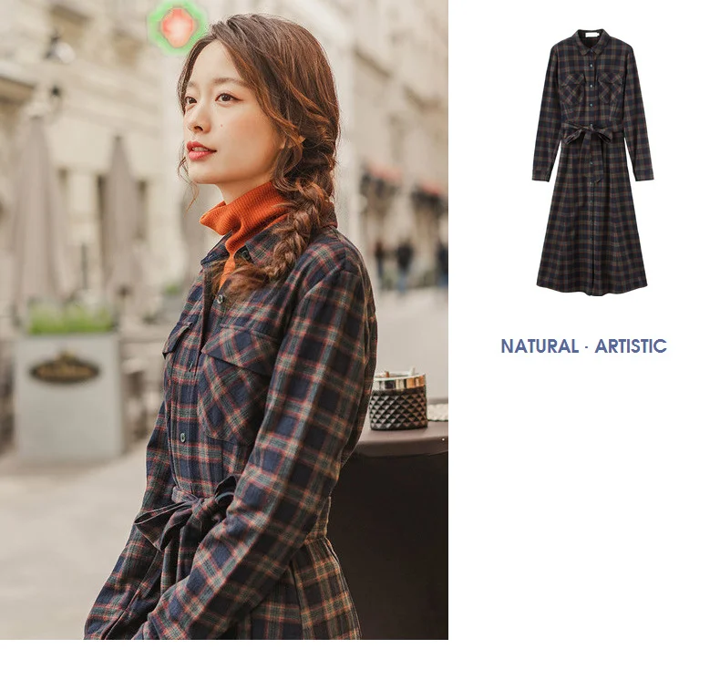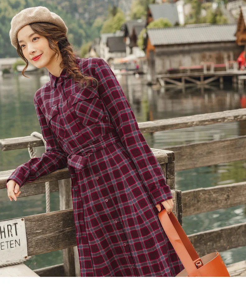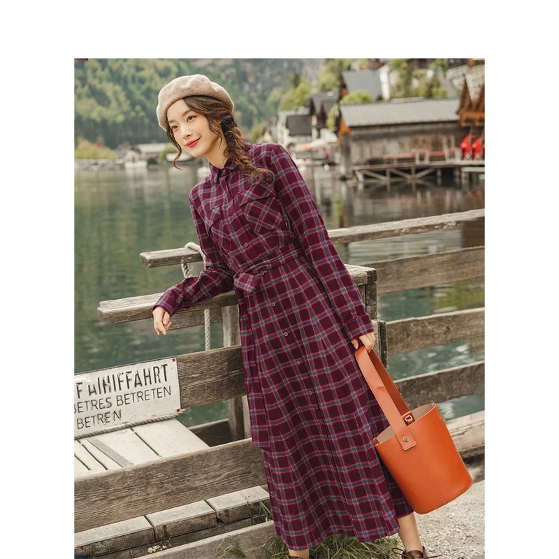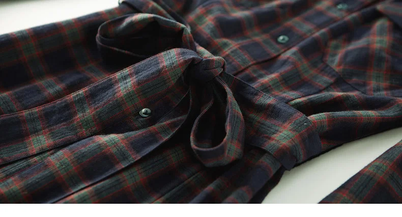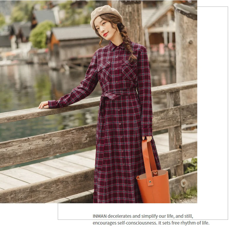 INMAN , осень 2019, Новое поступление, 100% хлопок , элегантное, отложной воротник, определенная Талия, а-силуэт, шнуровка , Ретро стиль, клетчатое женское платье icon star icon star icon star icon star icon star