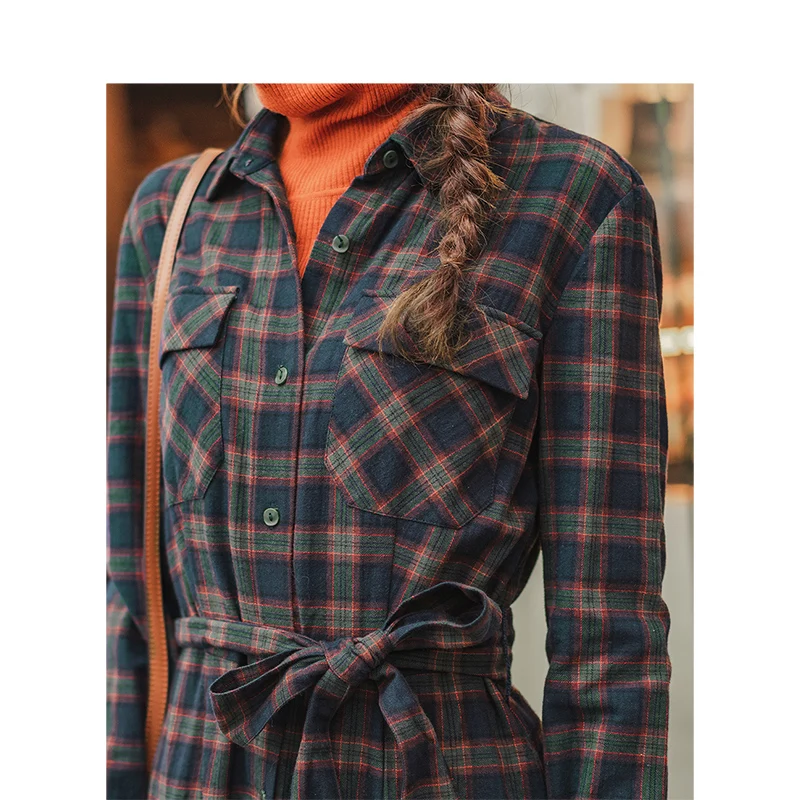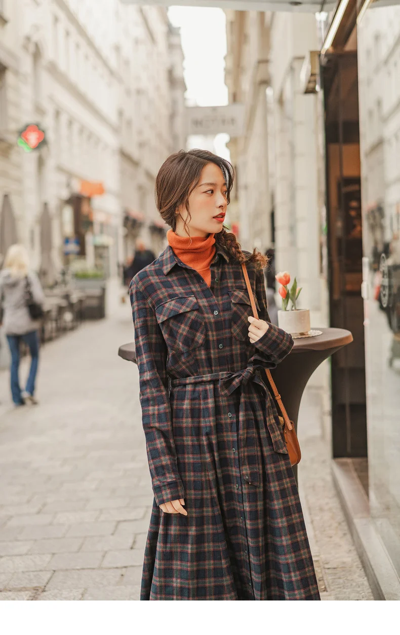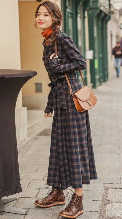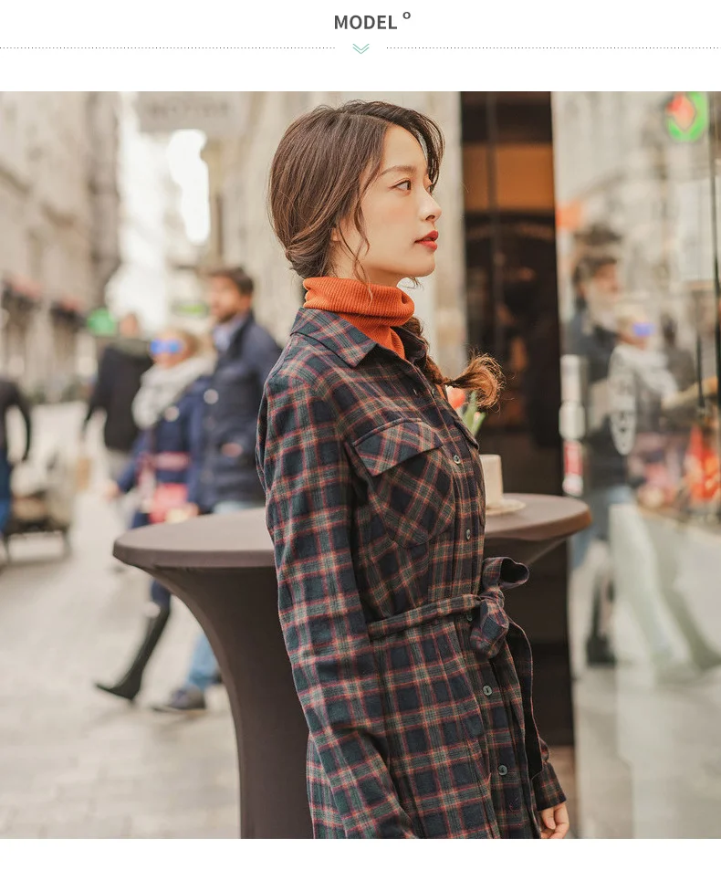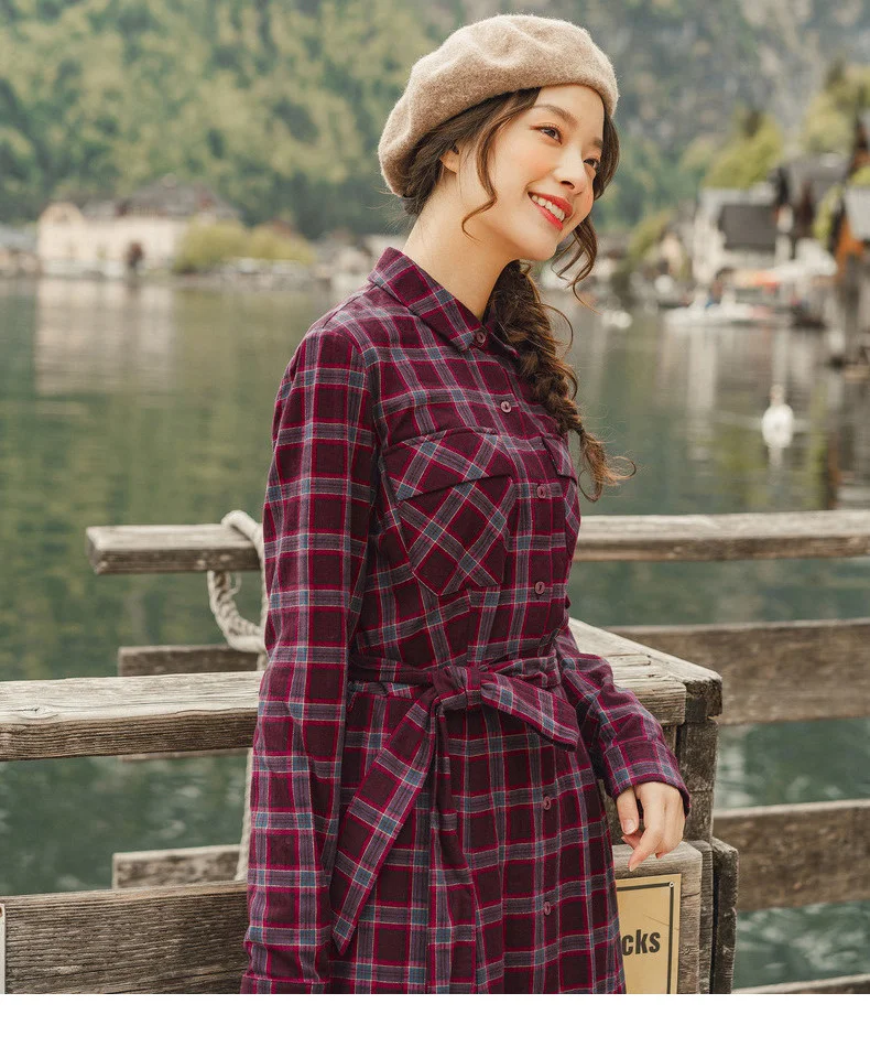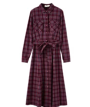 INMAN , осень 2019, Новое поступление, 100% хлопок , элегантное, отложной воротник, определенная Талия, а-силуэт, шнуровка , Ретро стиль, клетчатое женское платье icon star icon star icon star icon star icon star