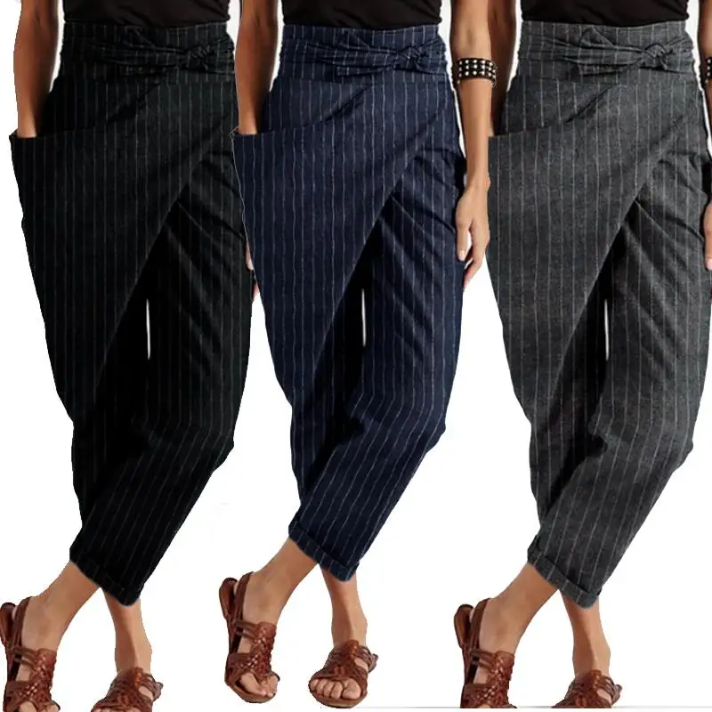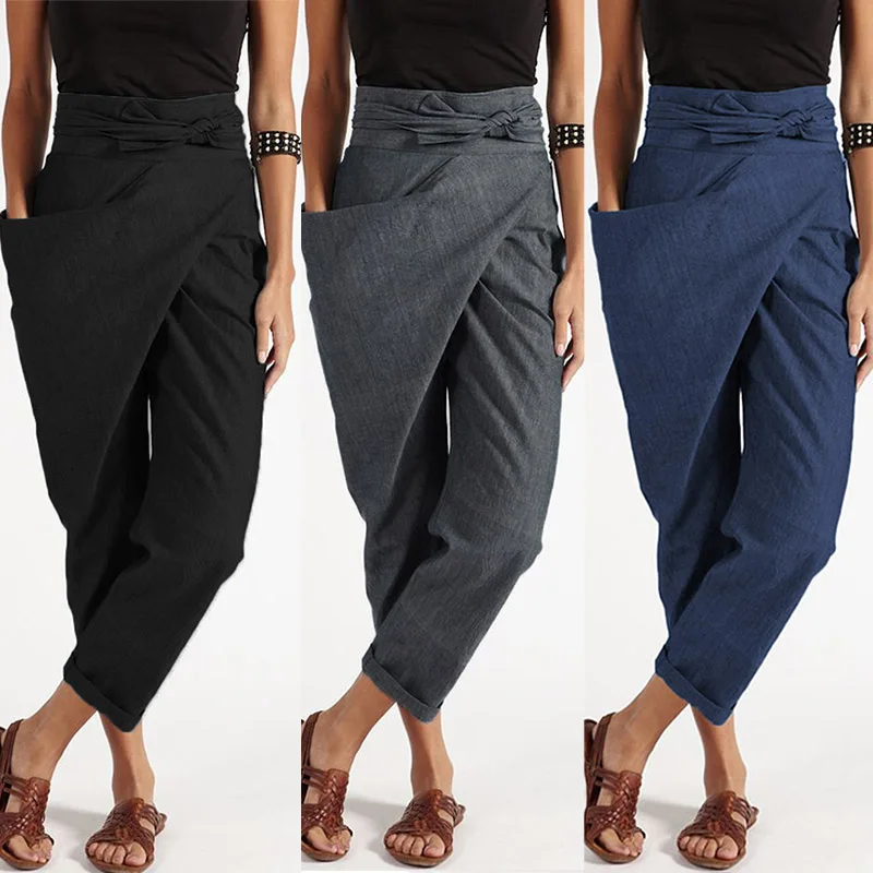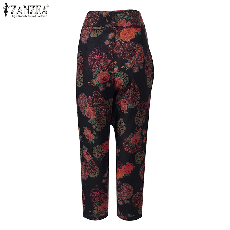 Брюки-султанки ZANZEA женские в стиле оверсайз, элегантные штаны, повседневные длинные модные брюки-Палаццо с большими карманами, укороченные брюки на молнии сбоку, 2021