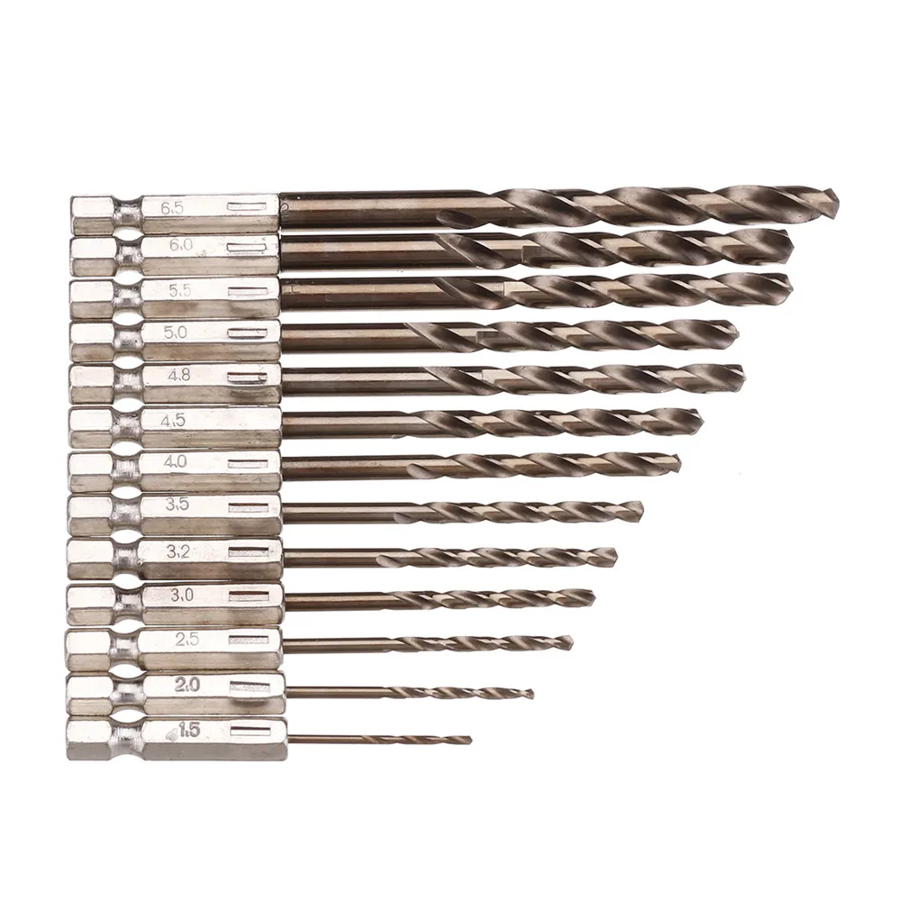 Описание:13 шт. 1,5-6,5 мм M35 кобальтовое Сверло HSS-Co Набор сверл с шестигранным хвостовиком 1/4 дюймаИдеально подходит для сверления нержавеющей стали, металла, алюминия, дерева и другихИзготовлен из материала HSS-Co, шестигранный хвостовик 1/4 дюймаСпецификация:Материал: HSS-Co(M35 Кобальт)Хвостовик: шестигранный 1/4 дюймаРазмеры: 1,5 мм/2,0 мм/2,5 мм/3,0 мм/3,2 мм/3,5 мм/4,0 мм/4,5 мм/4,8 мм/5,0 мм/5,5 мм/6,0 мм/6,5 ммОсобенности:1. Портативное и стационарное использование (в буровом прессе).2. Кончик точки разделения 135 градусов.3. Набор сверл HSS-Co для высокопрочных сталей, таких как нержавеющая сталь.4. Подходит для: алюминия, дерева, ковкого и глубокого бурения отверстий для позиционирования железа.