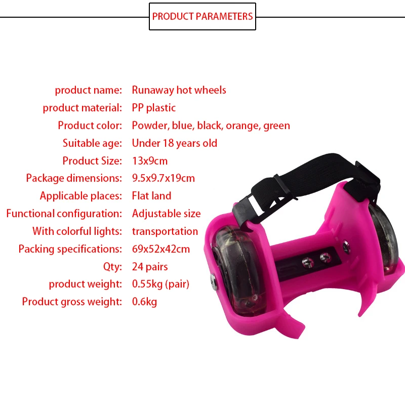 Регулируемый Мигающий Ролик можно отрегулировать через перекрестный ключ (не входит в комплект). Есть три отверстия для изменения в соответствии с практическим положением. Красочные Каждый имеет четыре красочные светильник. Когда колеса загораются, светильник становится прохладным в темноте. Безопасный Конструкция пряжки может плотно зафиксировать ногу на ролике, чтобы обеспечить безопасность использования. Дно состоит из металлической панели, которая является прочной и безопасной в использовании. Прочный Мигающий ролик изготовлен из высококачественного ПВХ материала и высокопрочной углеродистой стали, которая является износостойкой и гладкой для работы. Область применения Мигающий Ролик предназначен для детей, который может принести вам счастливое время катания на коньках. Его также можно использовать в качестве подарка для ваших детей. Спецификация: Тип: Мигающий Ролик Количество: 2 шт. Материал: ПВХ + TPR + углеродистая сталь Цвет: черный/розовый Светильник источник света: 4 шт. красочные светильник Размер: 13*9 см/5,11*3,54 дюйма/(Д * Ш * В) Вес нетто: 610 г/1,34 фунта Посылка: 2 * Мигающий Ролик 1 * коробка для посылка Упаковочный лист