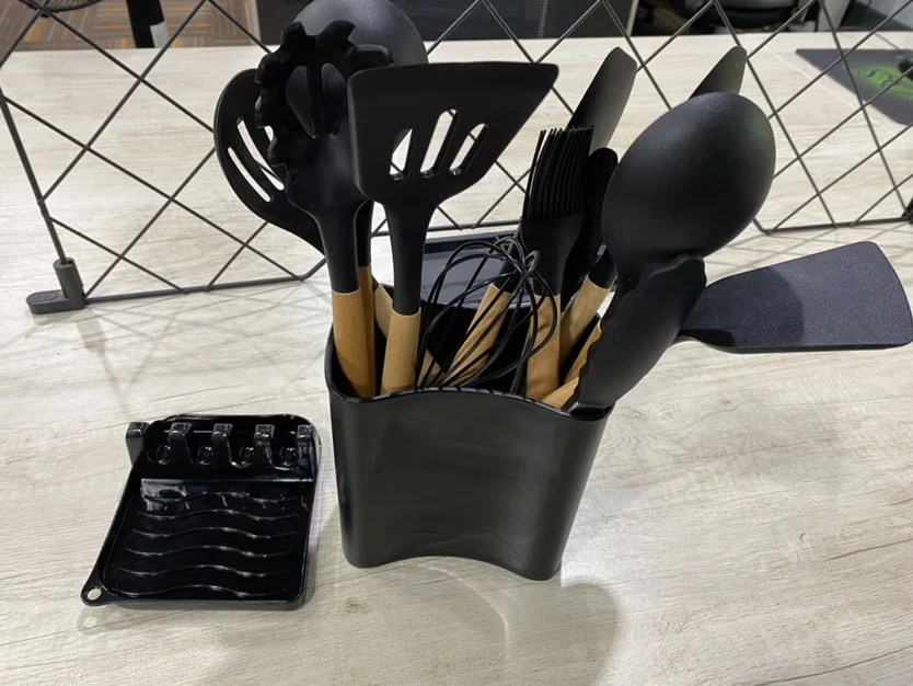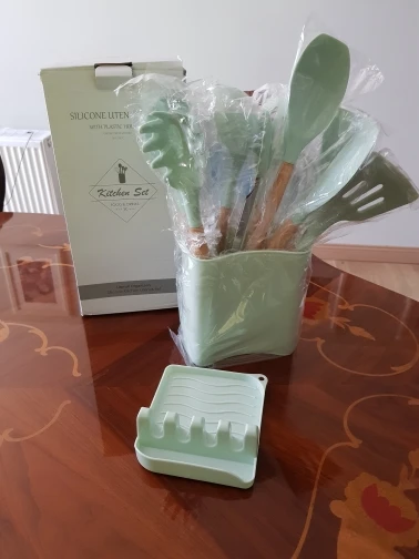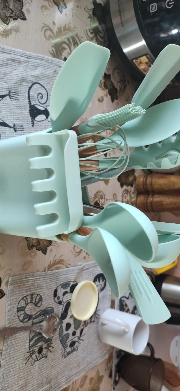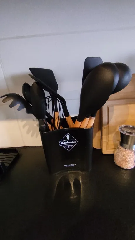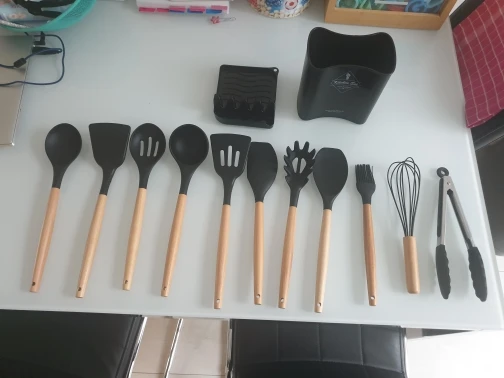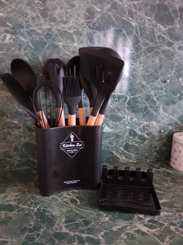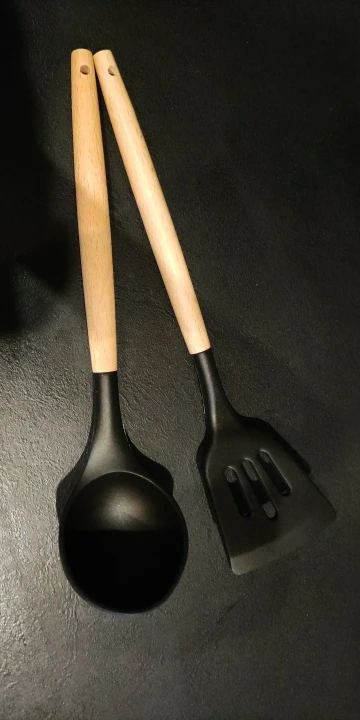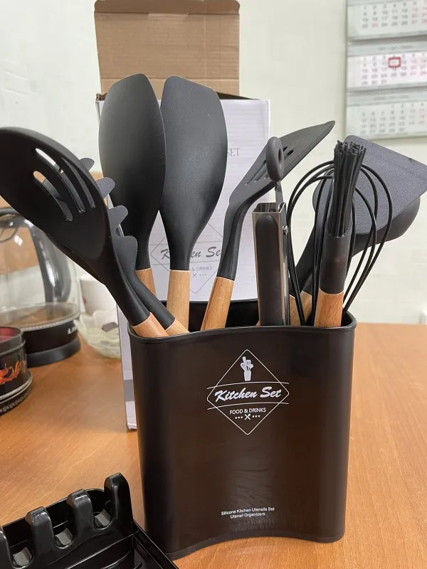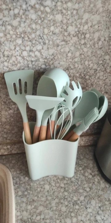 Силиконовые кухонные инструменты, 13 шт., набор для приготовления пищи, лопатка для супа, антипригарная лопатка с деревянной ручкой, специальная термостойкая конструкция