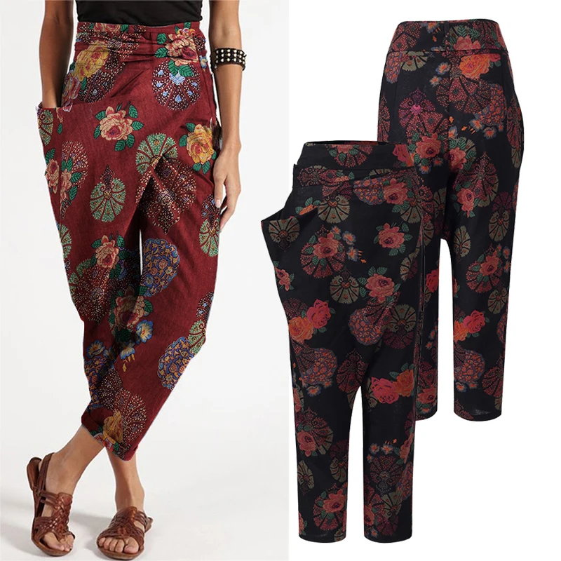 Модные брюки, повседневные длинные женские шаровары палаццо 2022 ZANZEA, женские брюки с большими карманами и боковой молнией, с резьбой
