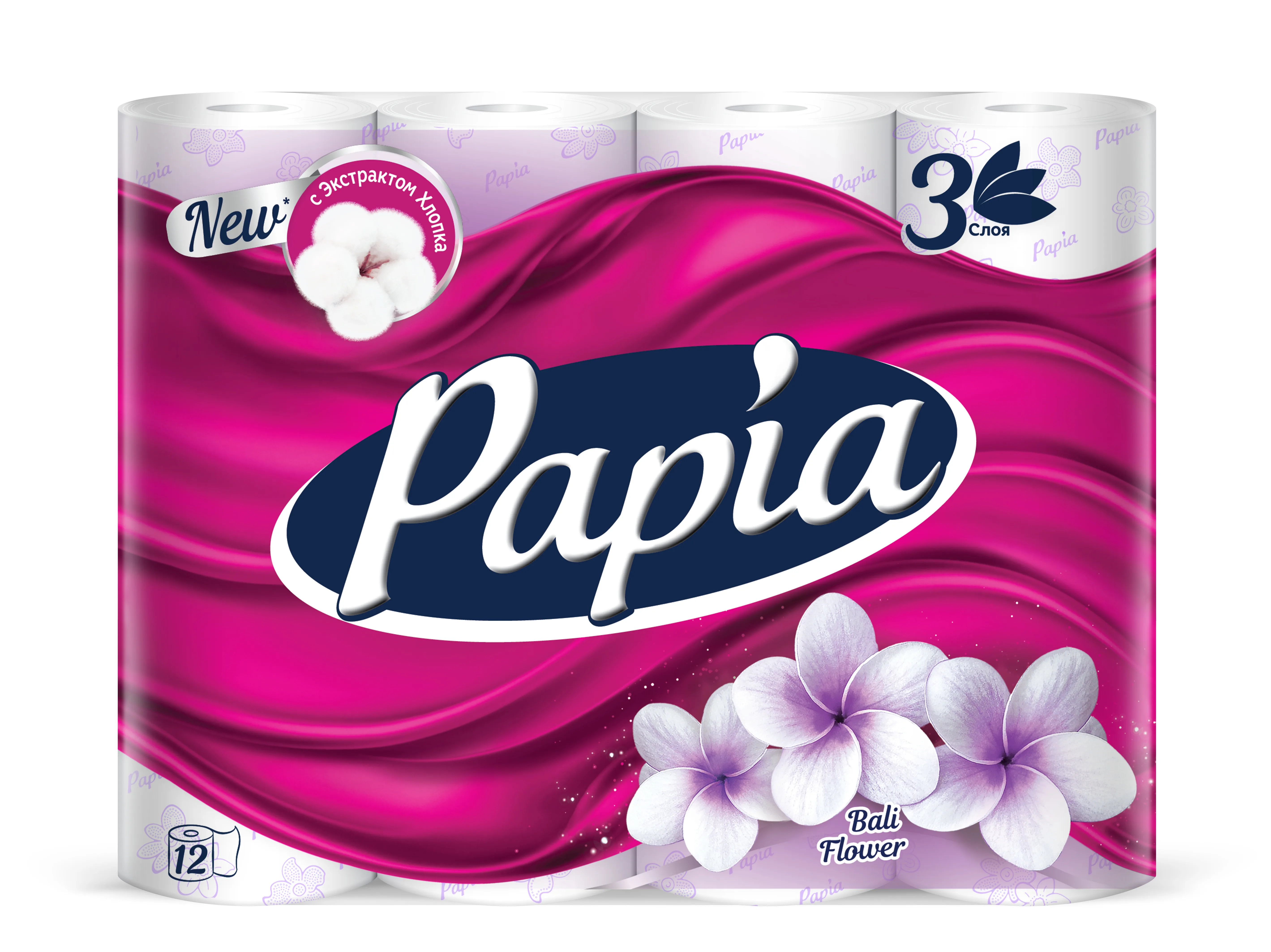 Туалетная бумага PAPIA Балийский Цветок 3 слоя 12 рулонов
