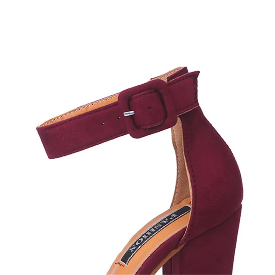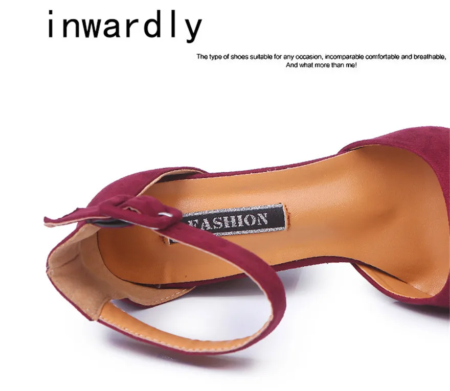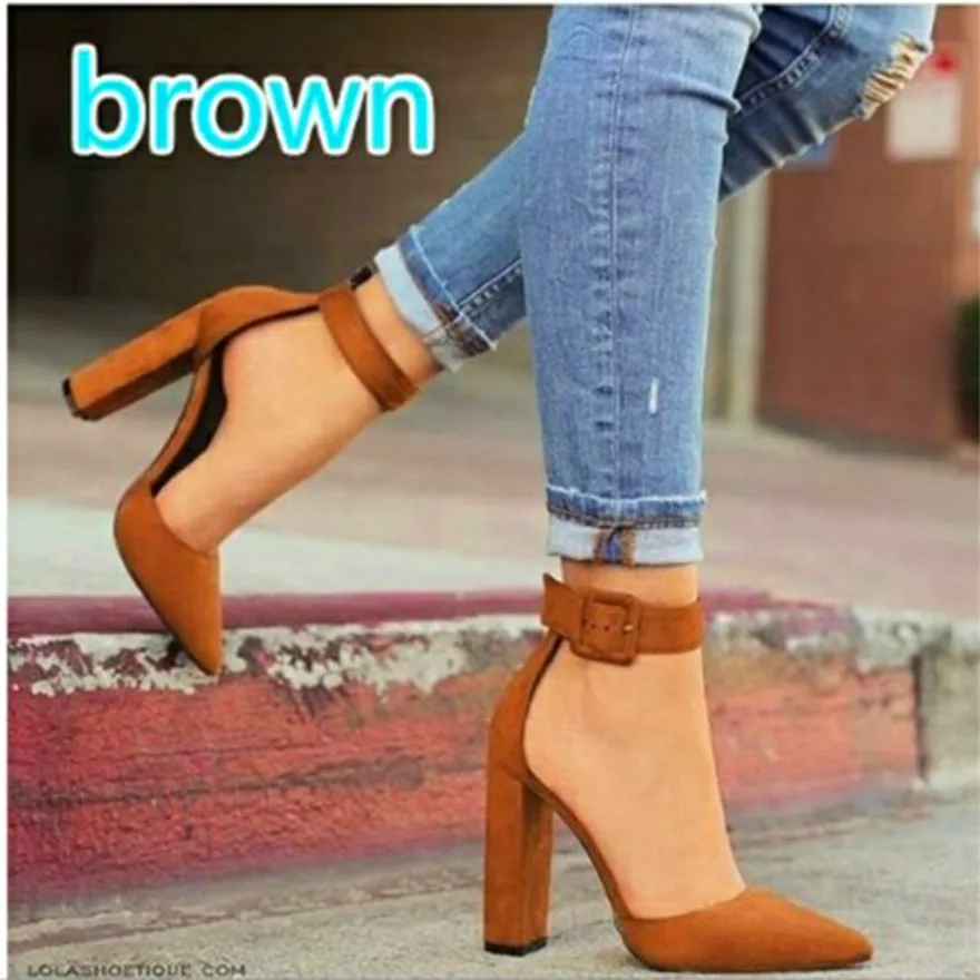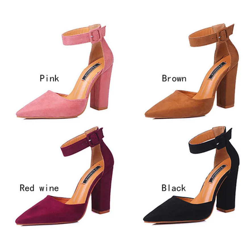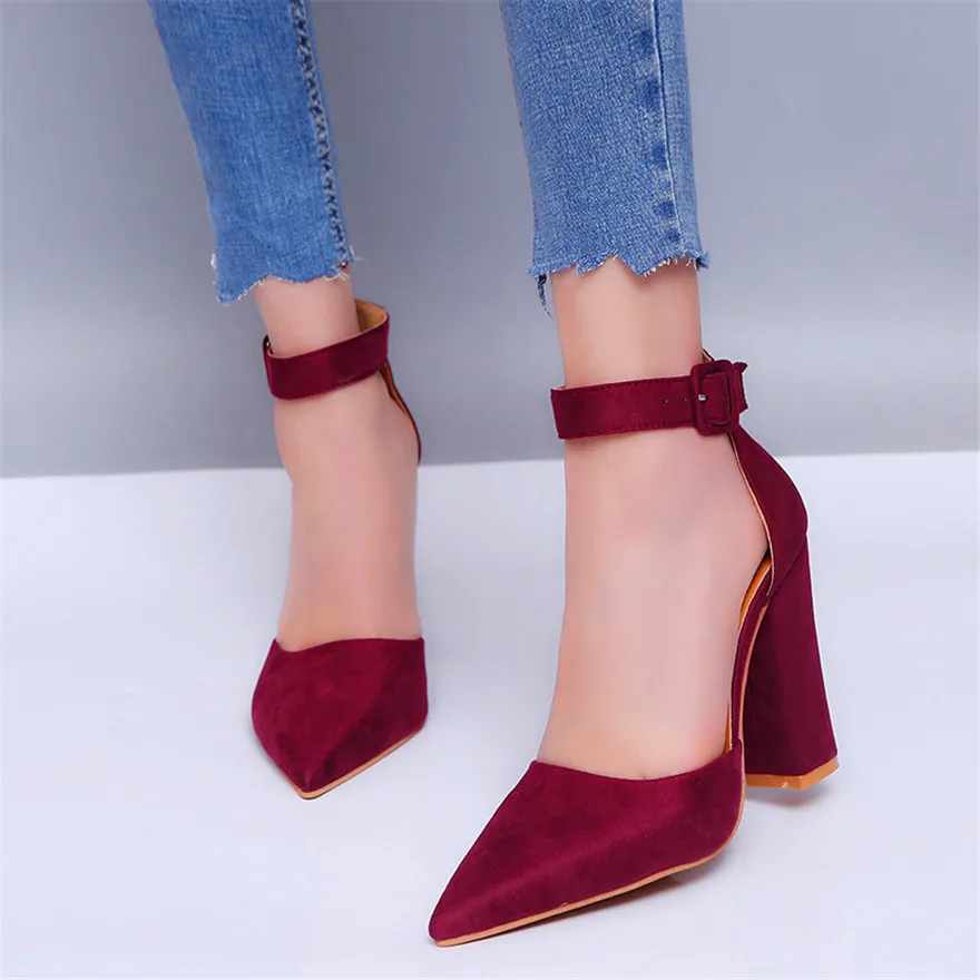 2022 женские босоножки из флока на каблуке с ремешком на щиколотке; Летние туфли; Женские модельные босоножки с острым носком на высоком массивном каблуке для вечеринки; Пикантная обувь; Большой размер 43