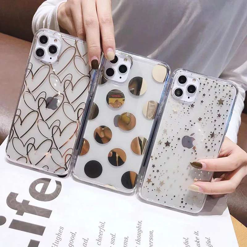 Чехол iPWSOO с блестками и звездами для iPhone 13, 12, 11 Pro Max, X, XR, XS Max, 7, 8 Plus, 12 Mini, прозрачный чехол с волнистыми точками