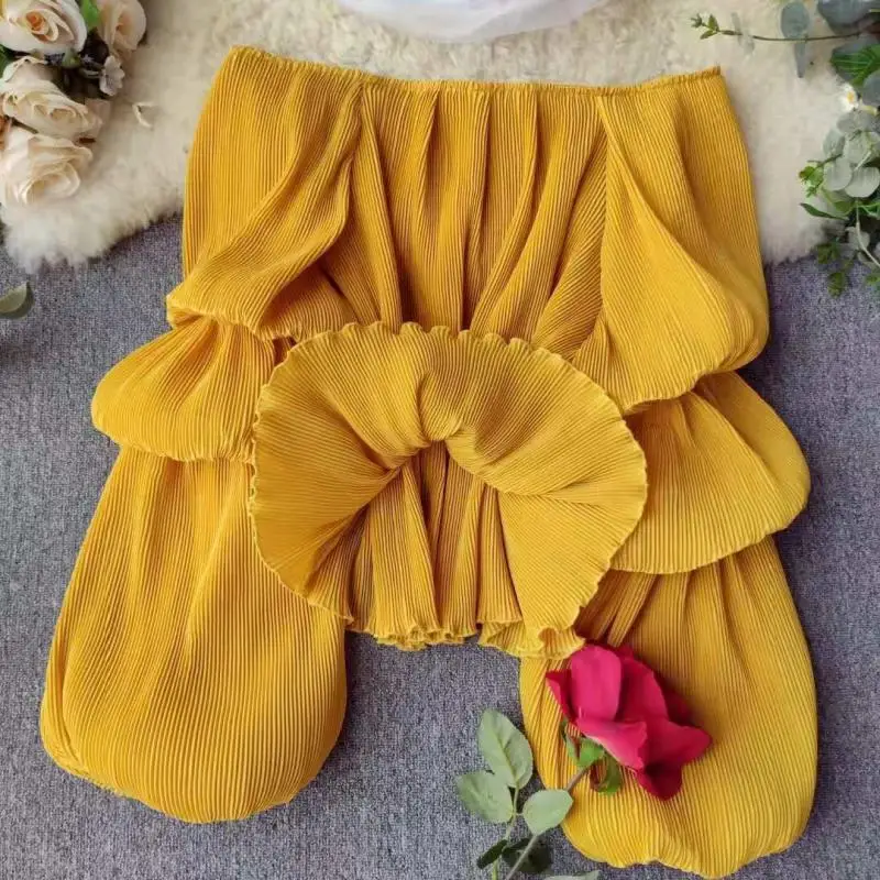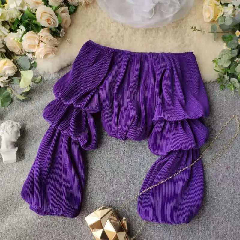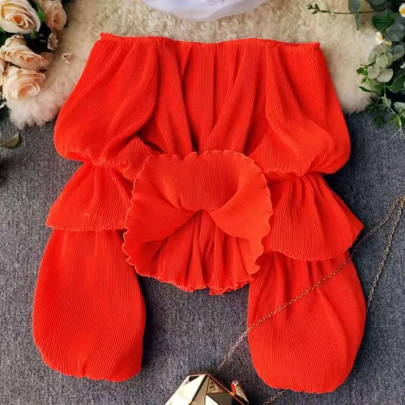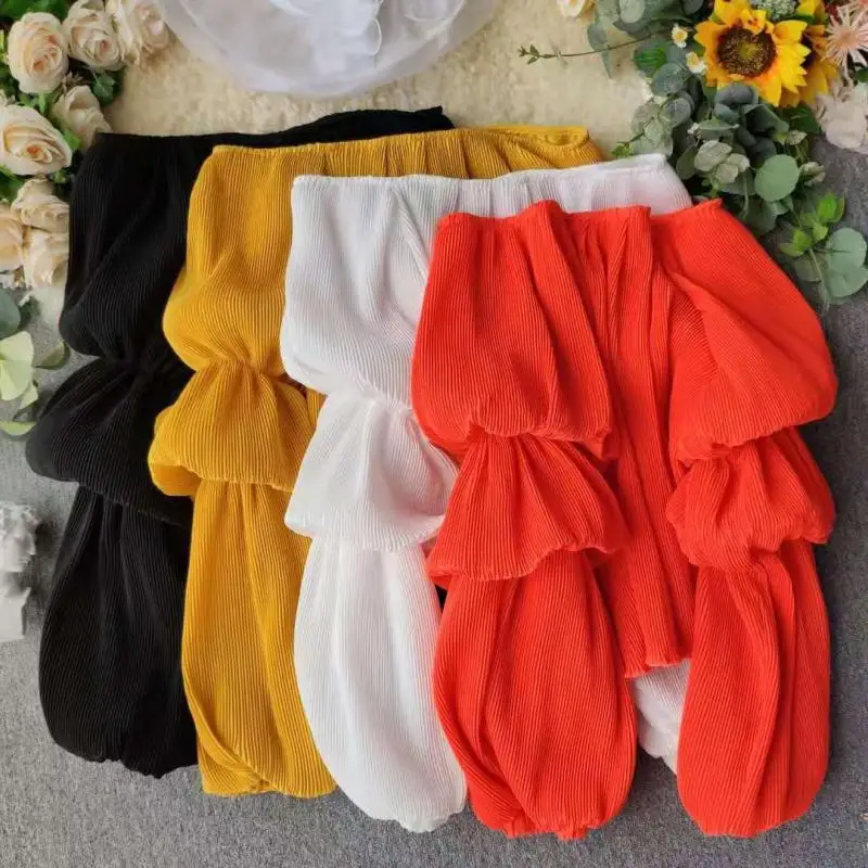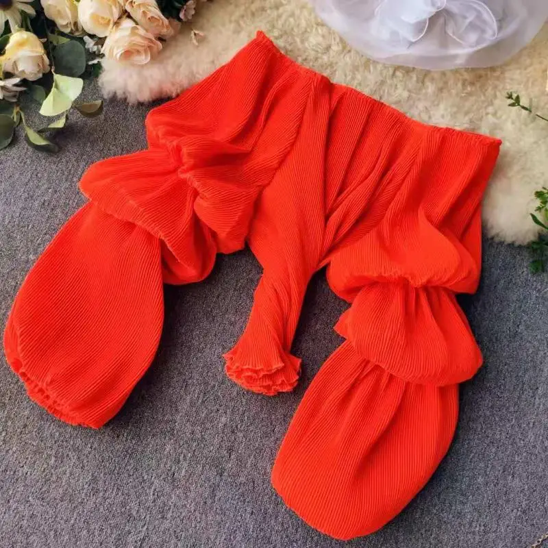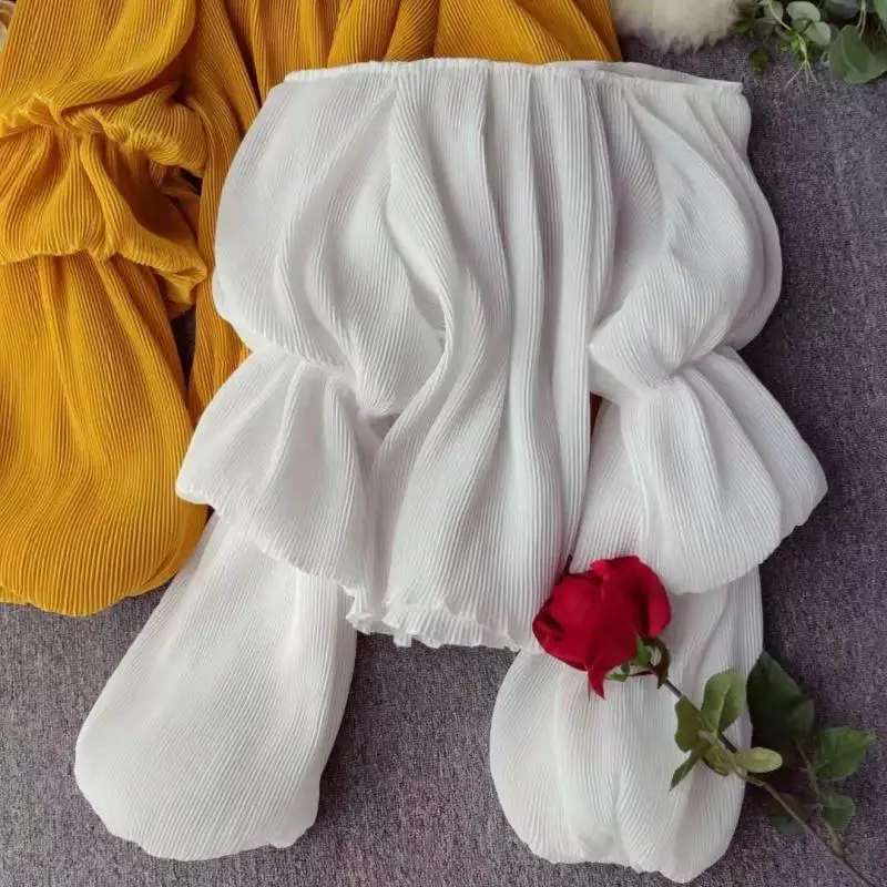 Женская шифоновая блузка с рукавами-фонариками, однотонная длинная Плиссированная блузка с рукавами-фонариками, модель J600 на осень 2019