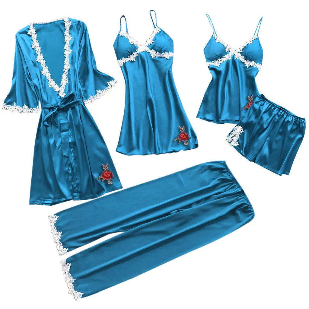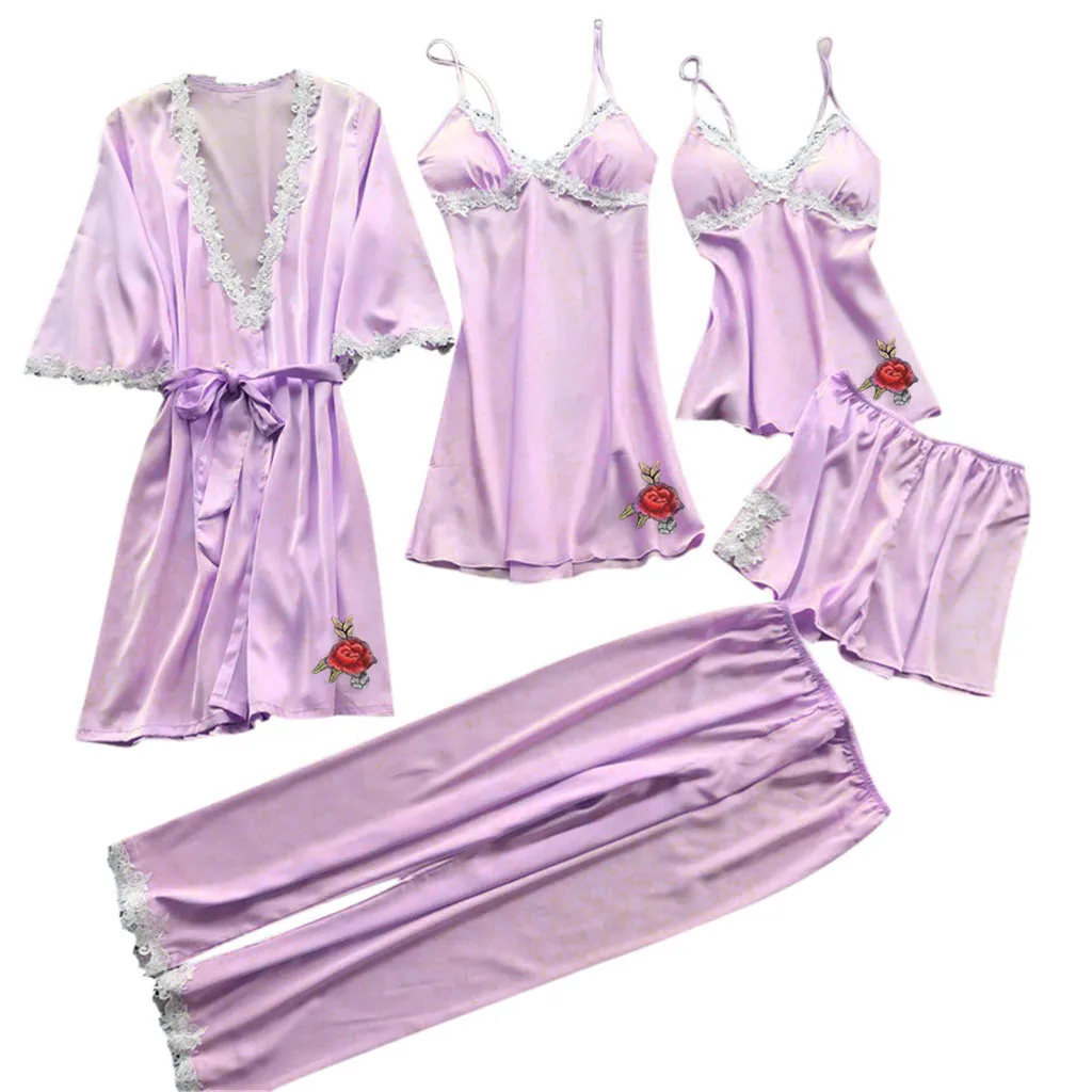 Сексуальная Женская пижама для женщин кигуруми Домашняя одежда ночнушка кружева пикантное нижнее белье, Белье для сна пижамы платье 5 шт. костюм h4