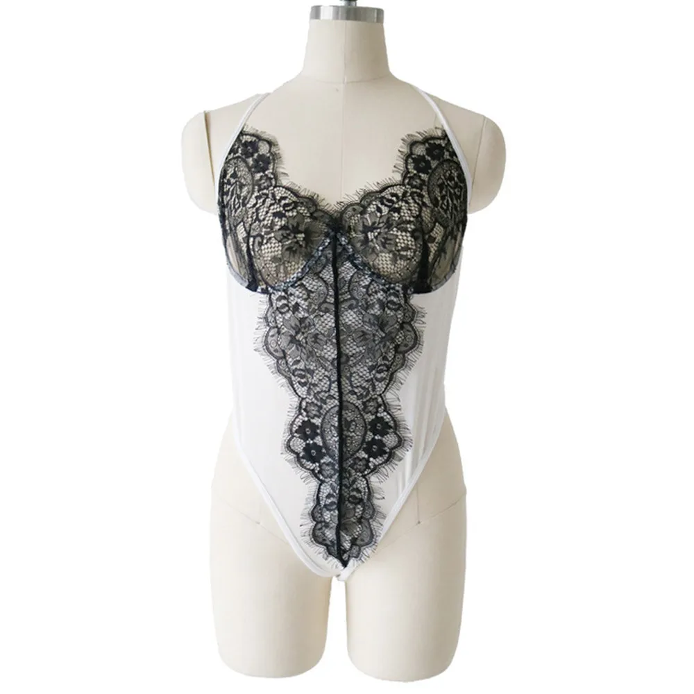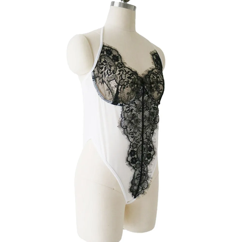 Модные женские комбинезоны, кружевные лоскутные сексуальные Тедди для сна, цельное женское нижнее белье, мягкие комбинезоны с открытой спиной размера плюс 3XL-5XL