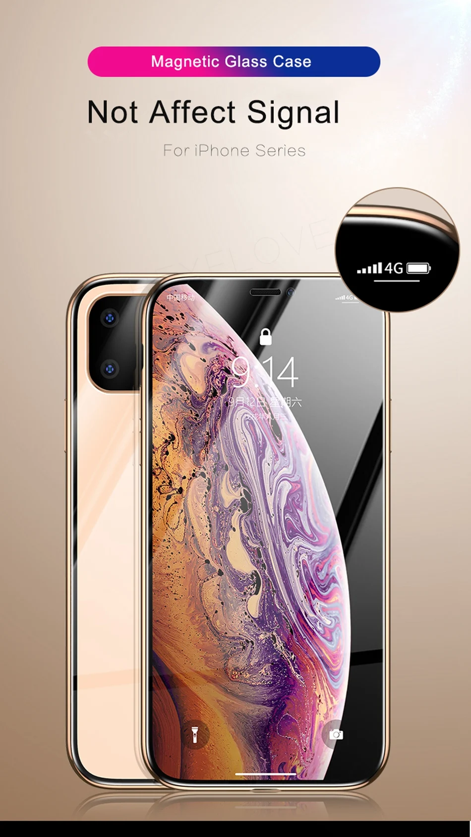 Металлический магнитный чехол для телефона iPhone 6 7 8 Plus XR XS MAX, двухсторонний стеклянный чехол для iPhone 11 Pro Max