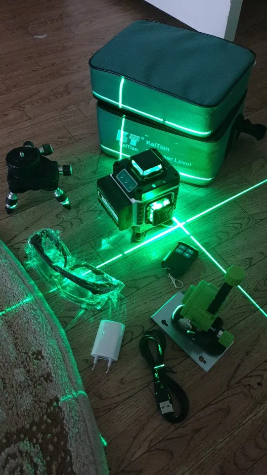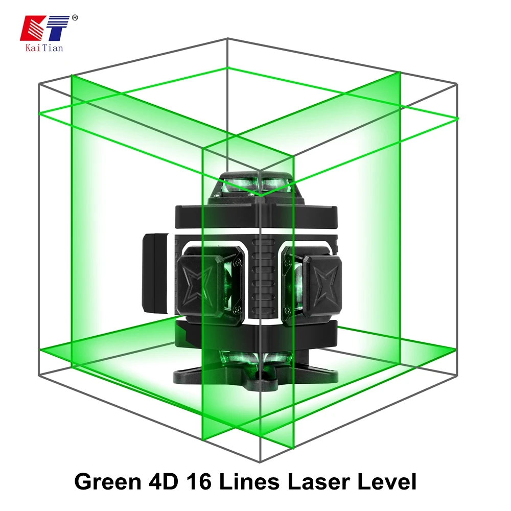 Нивелир лазерный Kaitian, 16 линий, самонивелирующийся, зеленый, вертикальный и горизонтальный, Кронштейн 360