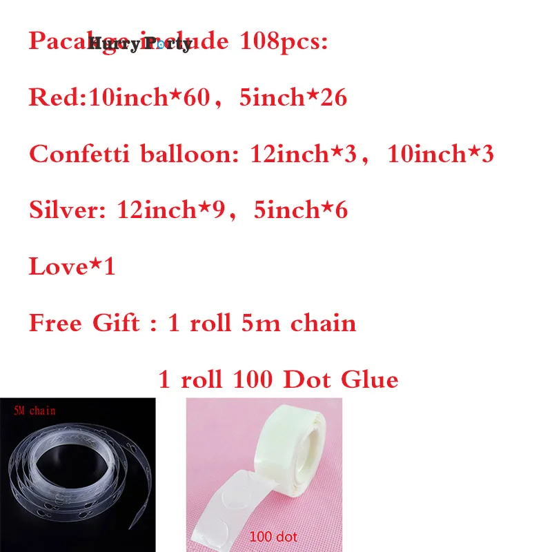 108 шт. гранатовый красный воздушный шар, гирлянда, фотоэлемент, любовь, фольга, Золотой блесток, конфетти, хромированный фотоэлемент, товары для свадебной вечеринки