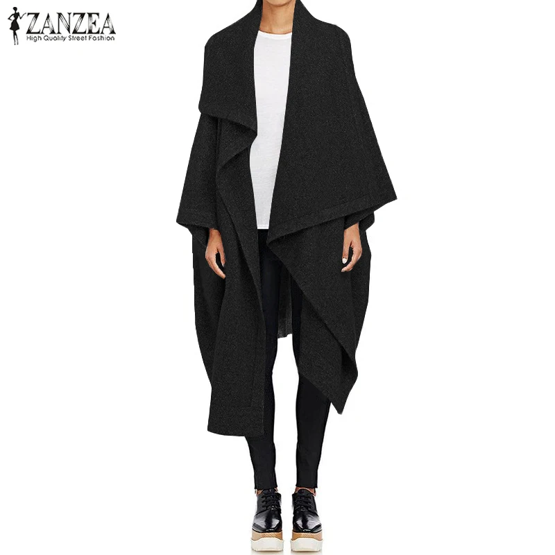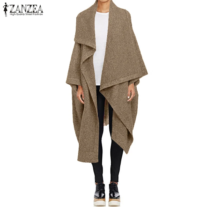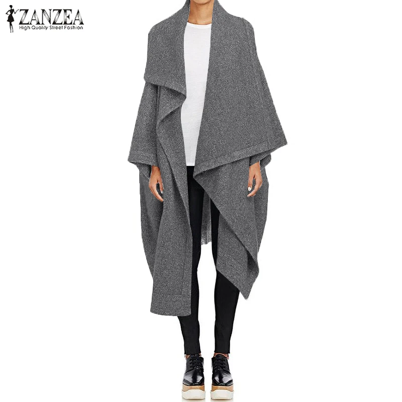 2022 ZANZEA Модный повседневный длинный Тренч женские пальто осенний кардиган с воротником с лацканами куртки Женская шерстяная накидка Пончо Топы оверсайз