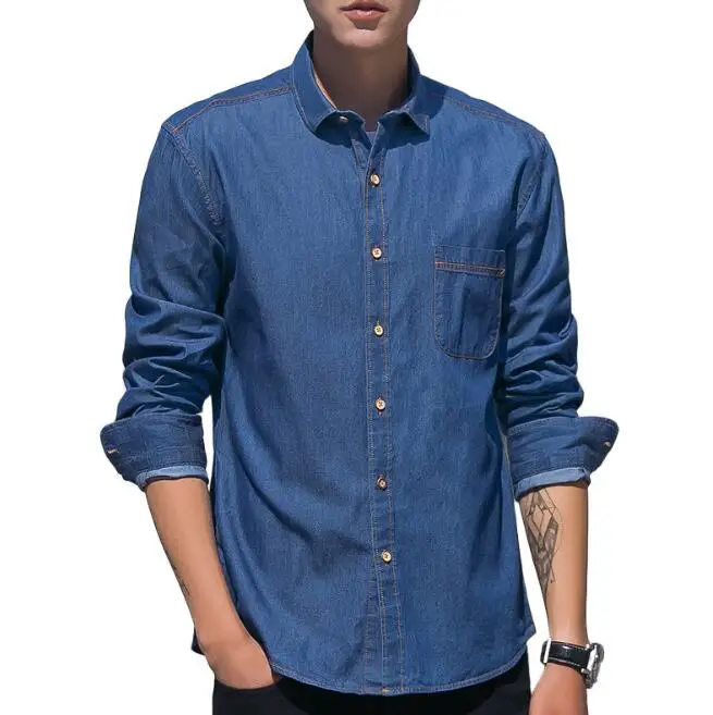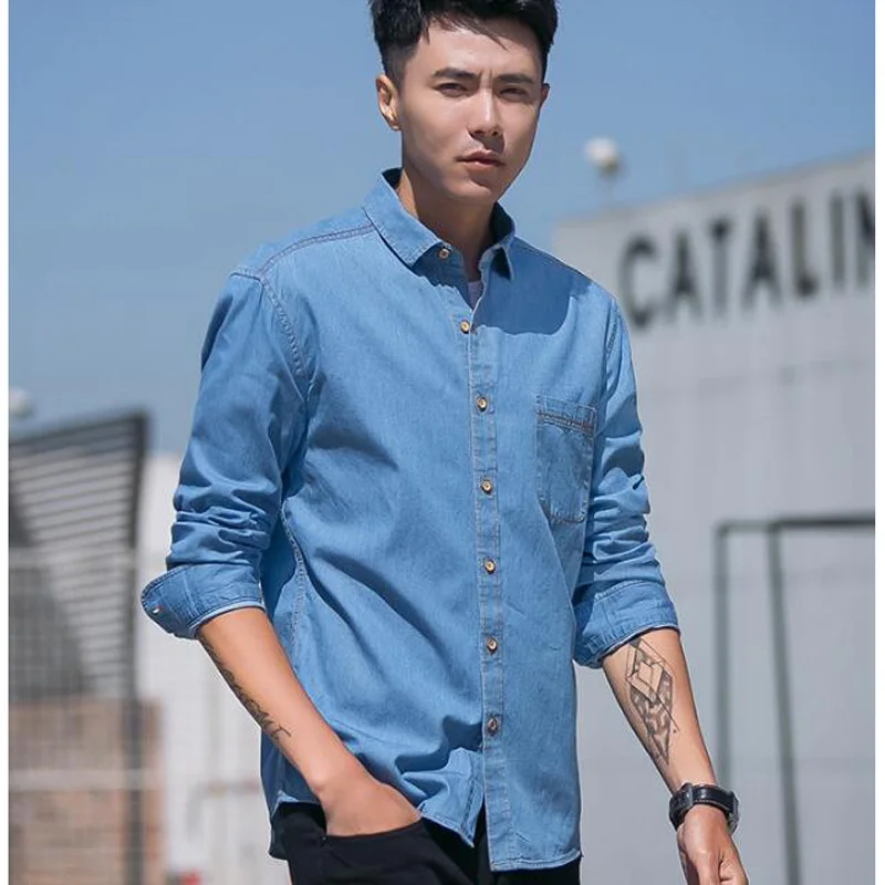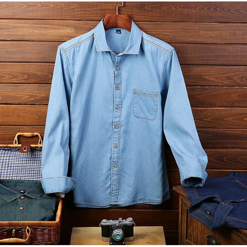 Модные джинсы Мужская рубашка с длинным рукавом джинсовая рубашка мужские весенние повседневные мужские рубашки Осень Slim Fit Chemise Homme
