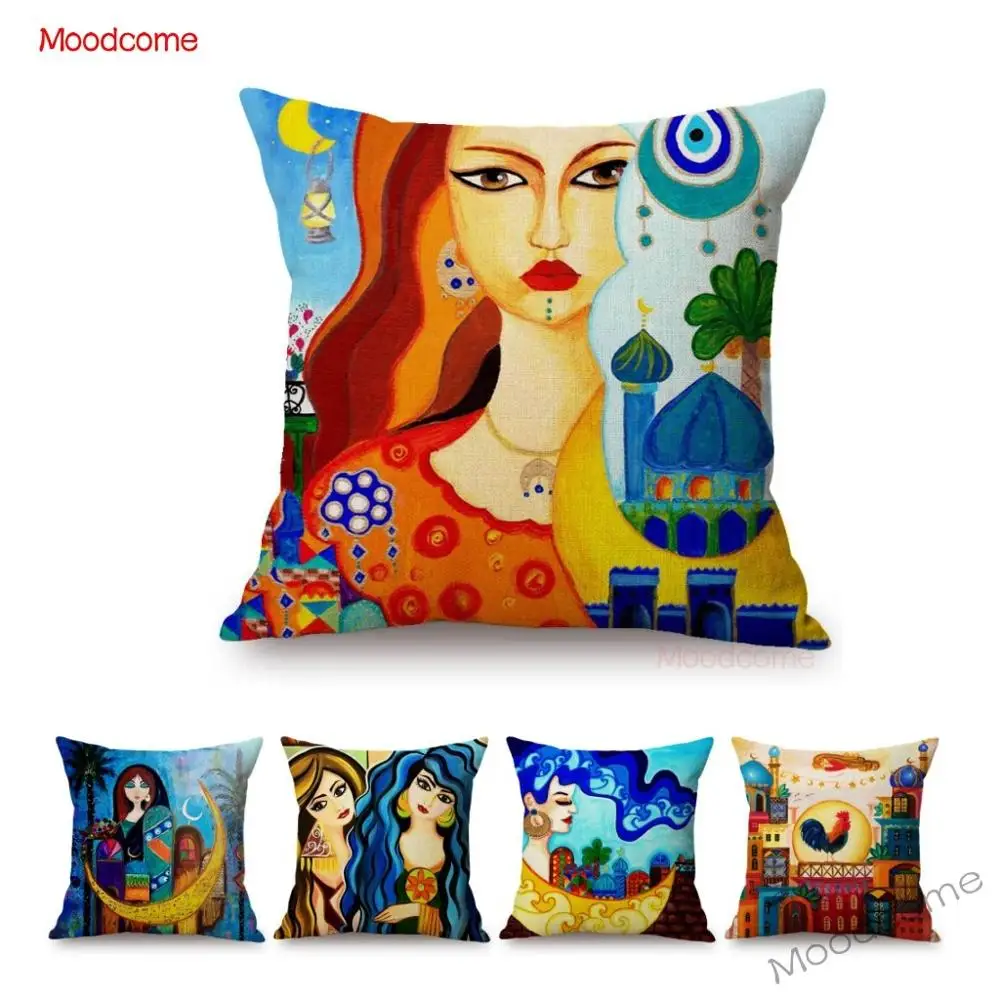 Цветной Чехол на подушку в этническом стиле с изображением девушки,...