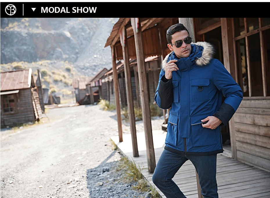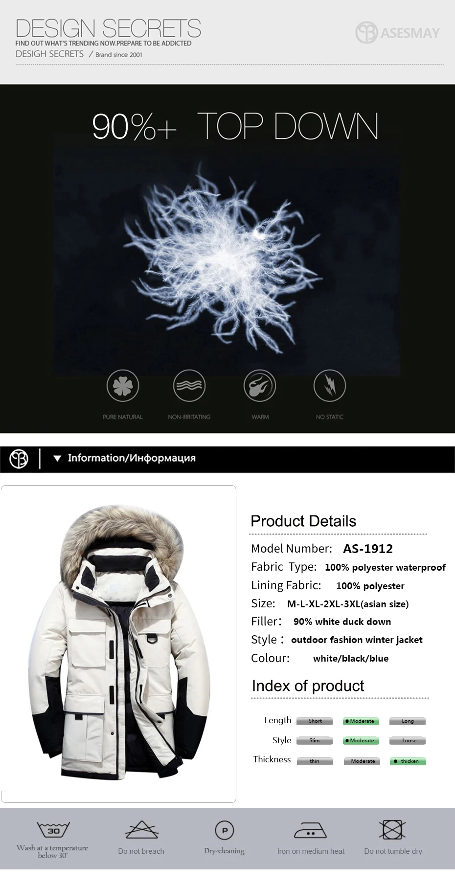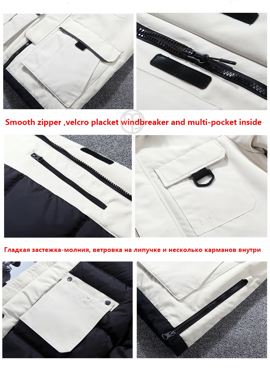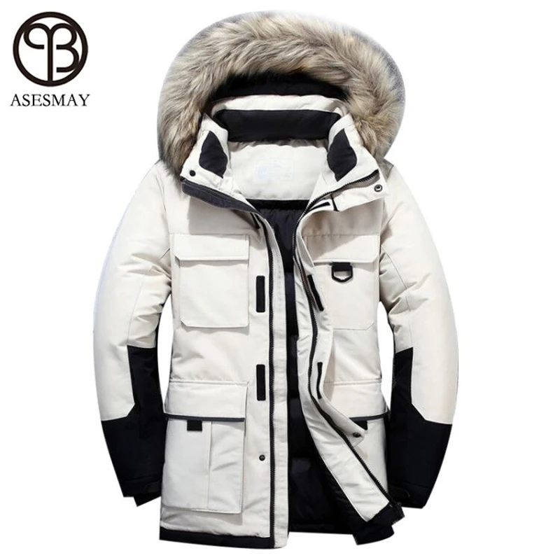 Высококачественный толстый ветрозащитный мужской пуховик с меховым ...