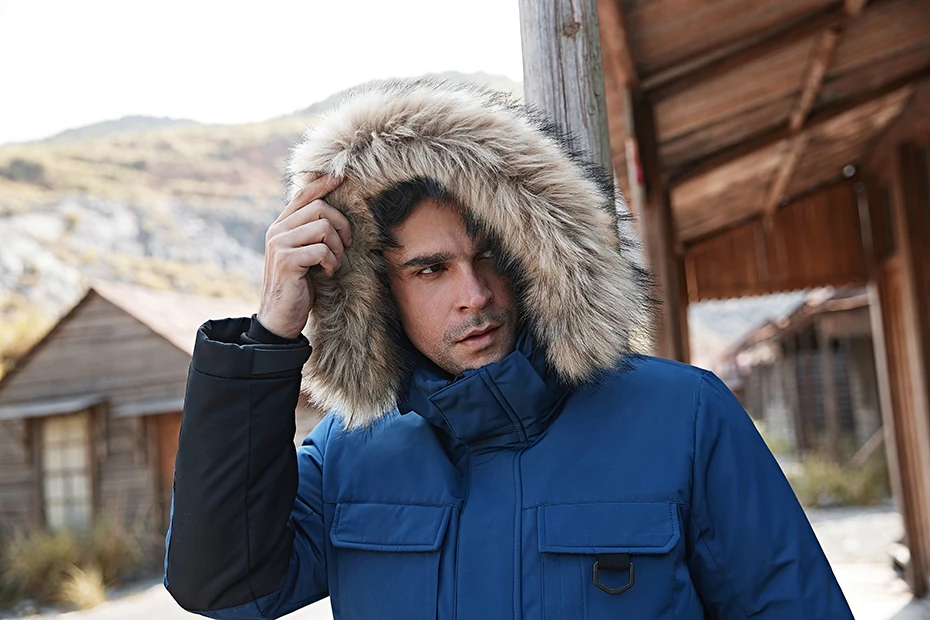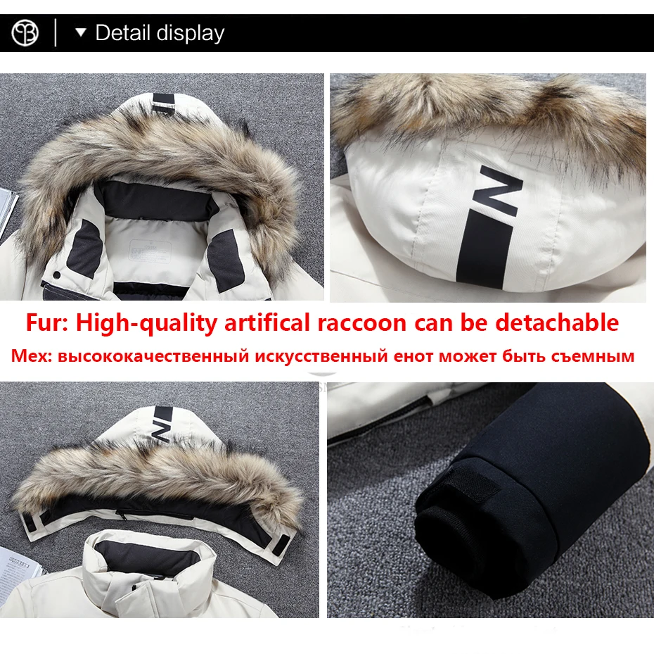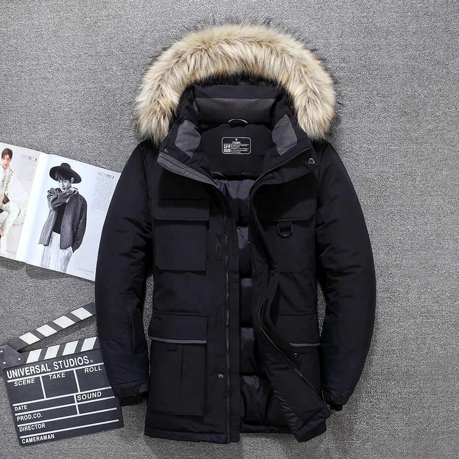 2021 мужской пуховик и пальто, Высококачественная Зимняя Мужская парка с мехом и капюшоном, длинная Мужская Толстая теплая искусственная парка с гусиными перьями