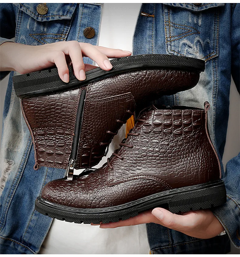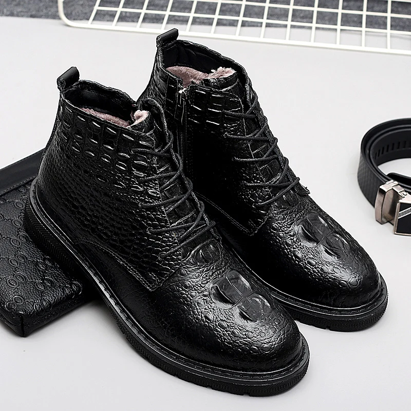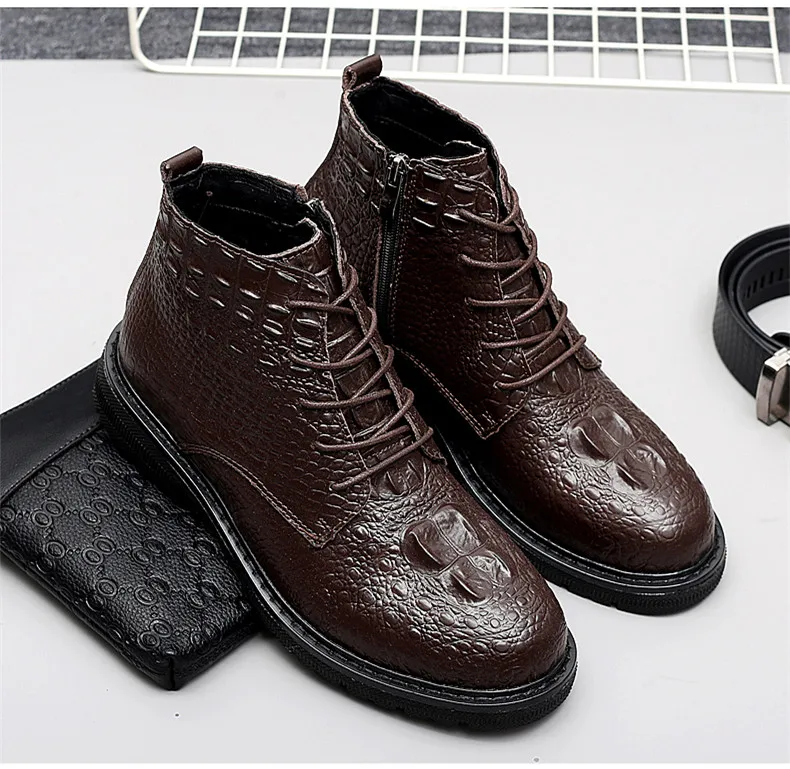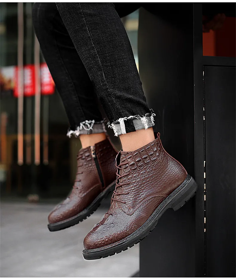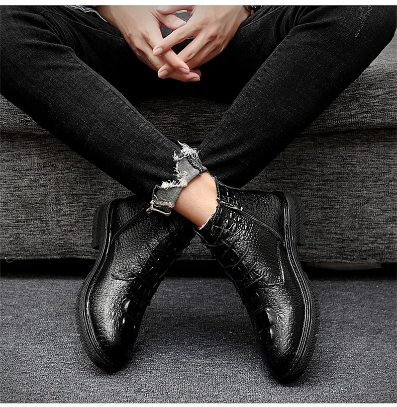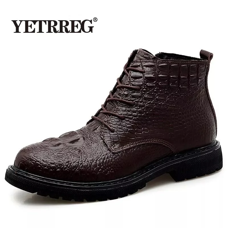 Мужские ботинки на меху, коричневые ботильоны из натуральной кожи, теплые плюшевые ботинки челси, Осень-зима 2019