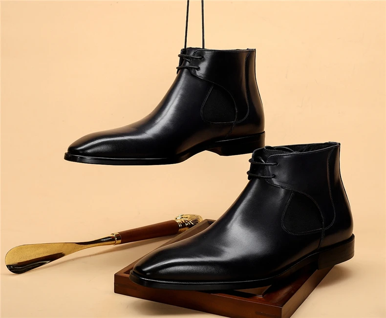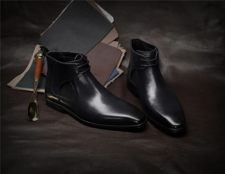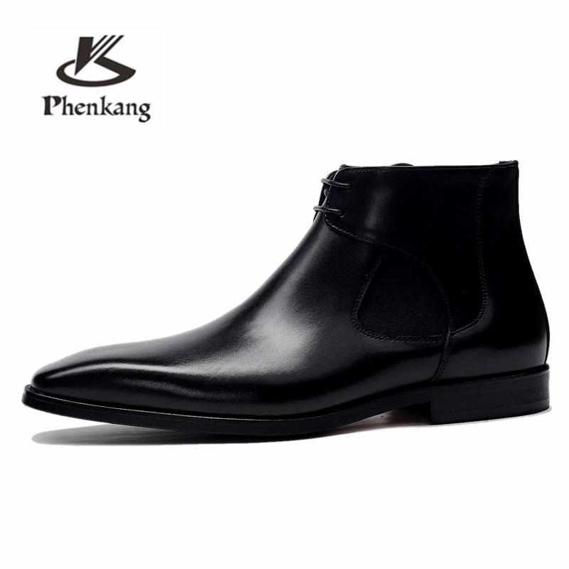 Ботинки-Челси мужские из натуральной коровьей кожи, на плоской подошве, платье из кружева, 2020