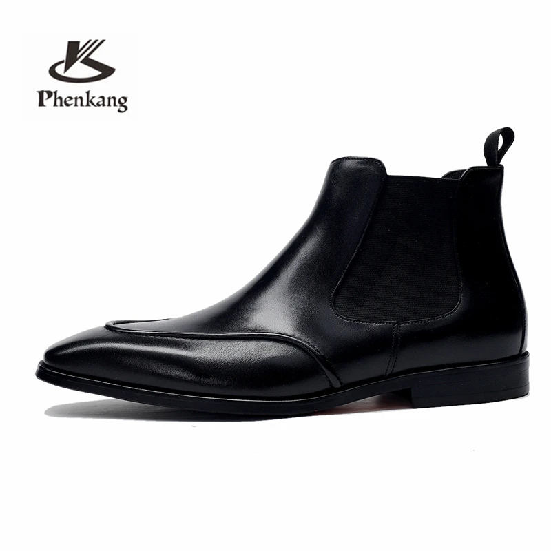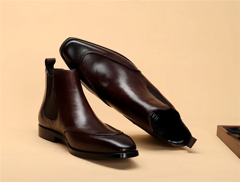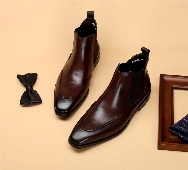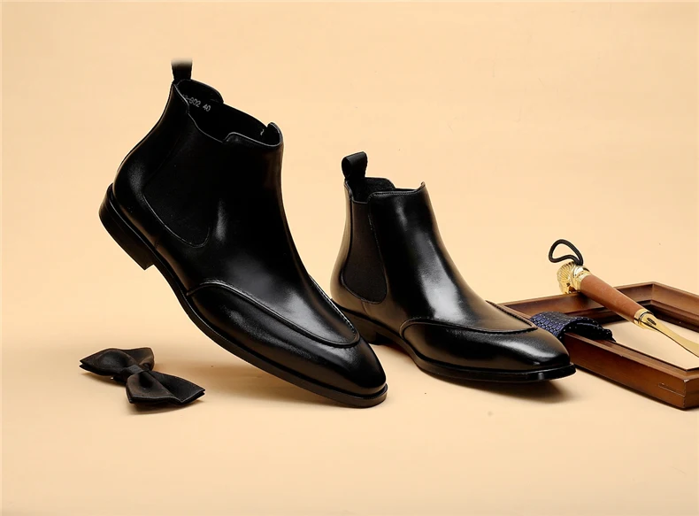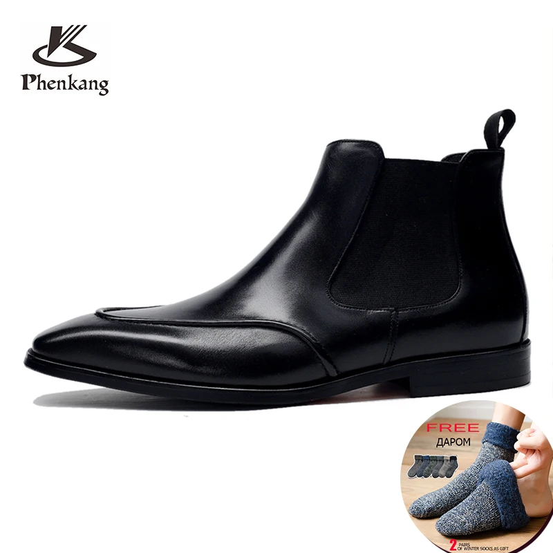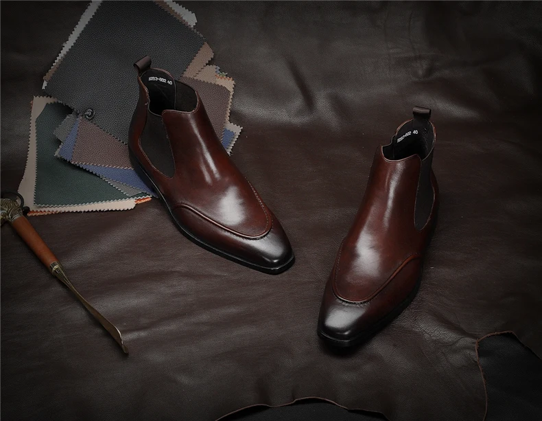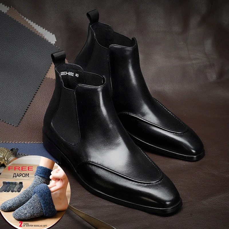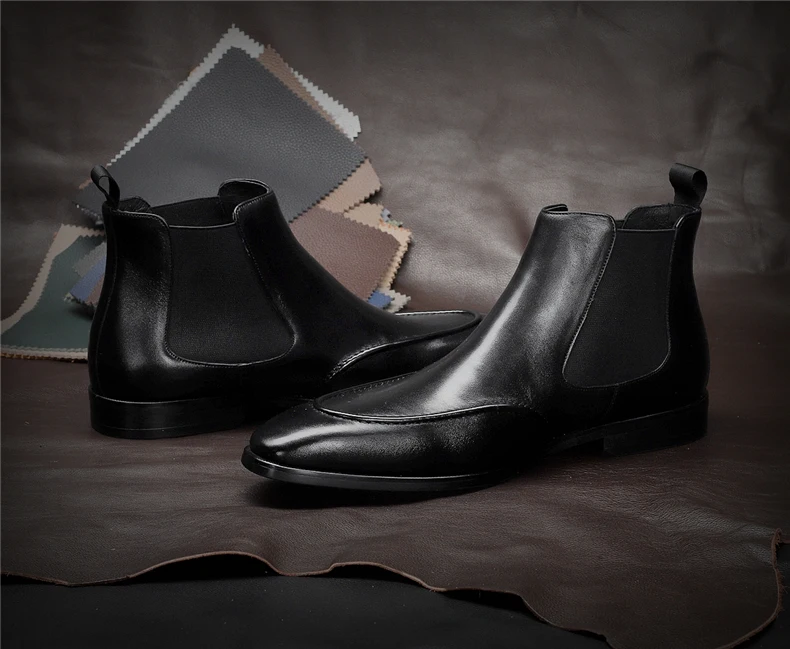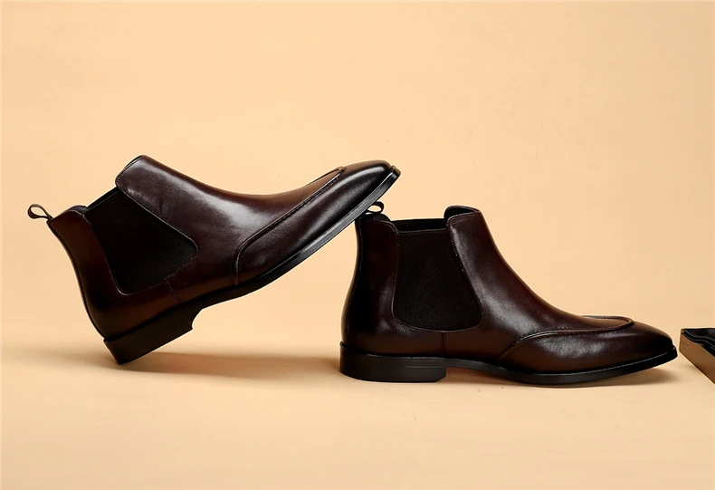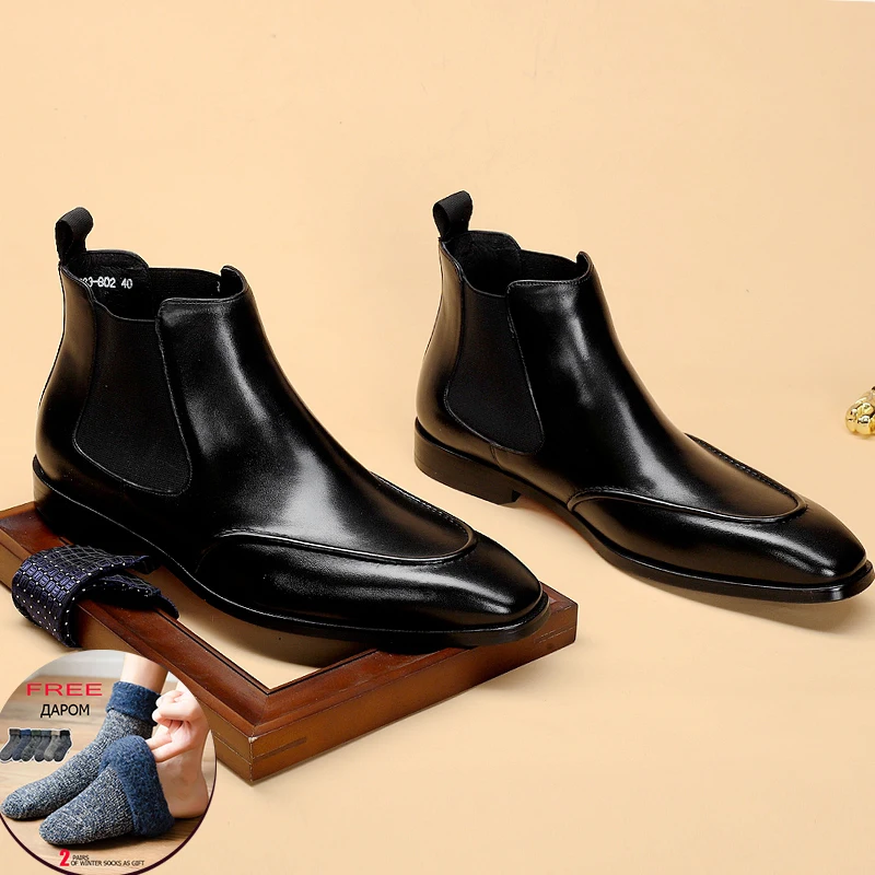 Мужские зимние ботинки челси из натуральной коровьей кожи, ботинки, броги, повседневная обувь на плоской подошве, удобные качественные классические ботинки без шнуровки, 2020
