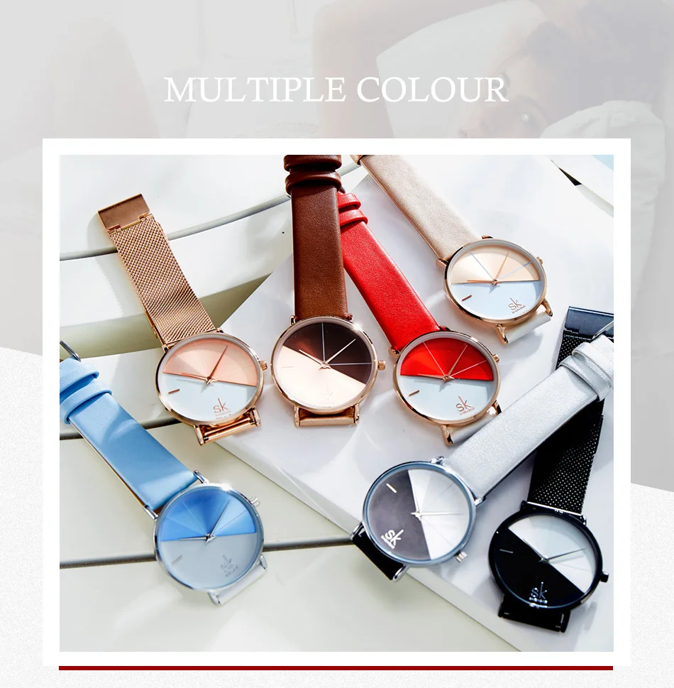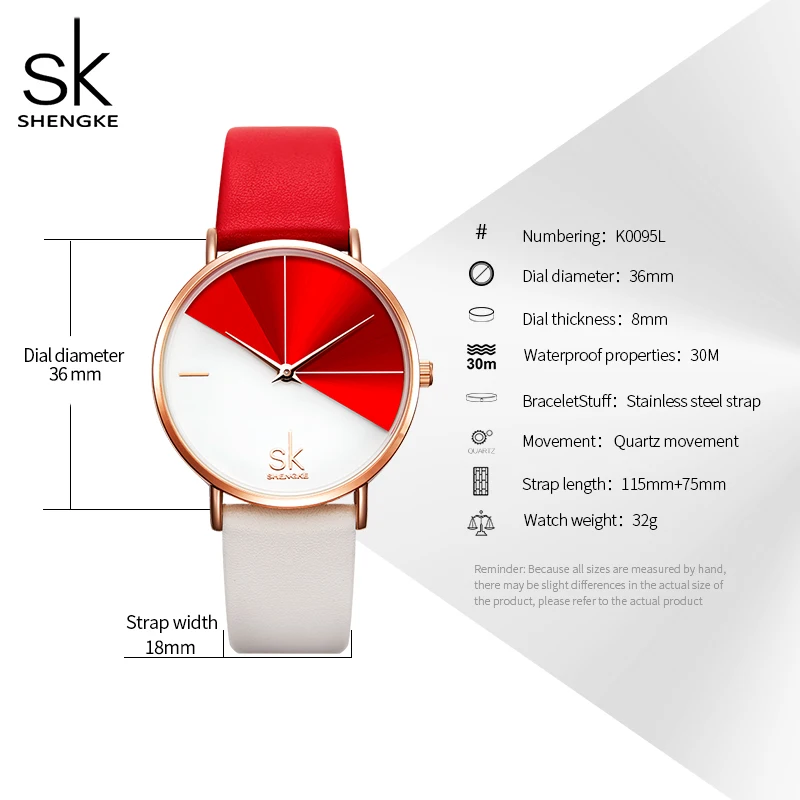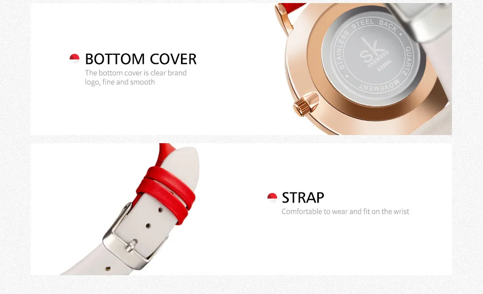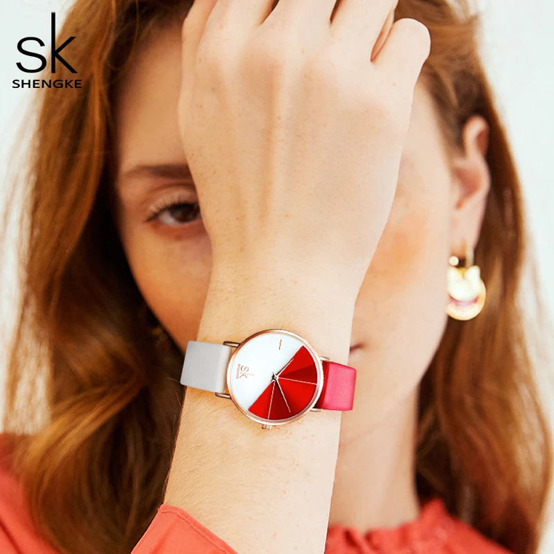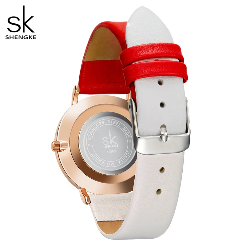 Женские Аналоговые кварцевые часы Shengke с ремешком из искусственной кожи