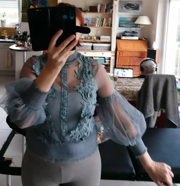 Доставка была очень быстрой, мой дом прибыл через 12 дней! Рубашка имеет подкладку с одной стороны, что я боюсь разрезать... Но в целом, элегантная и качественная блузка! У него много хороших деталей. Мне очень понравилось. Кроме того, продавец отправил небольшой gif большое спасибо.