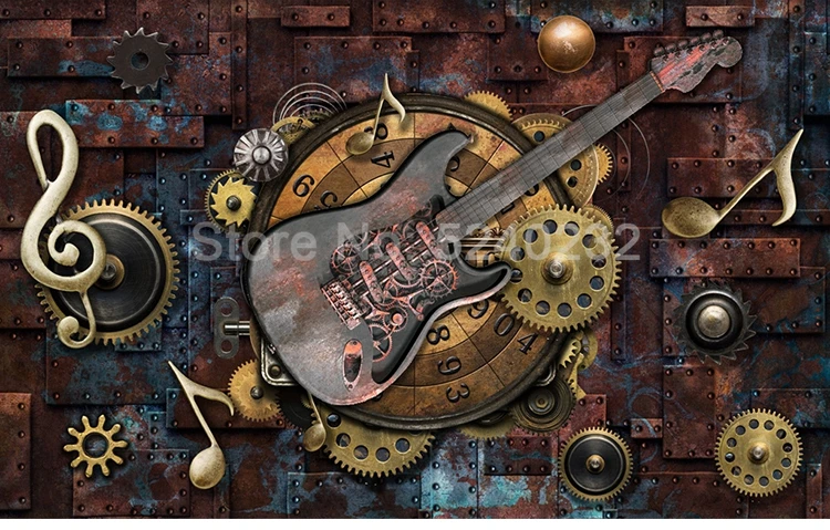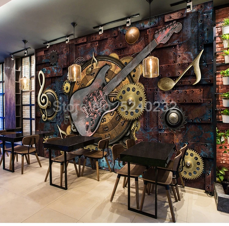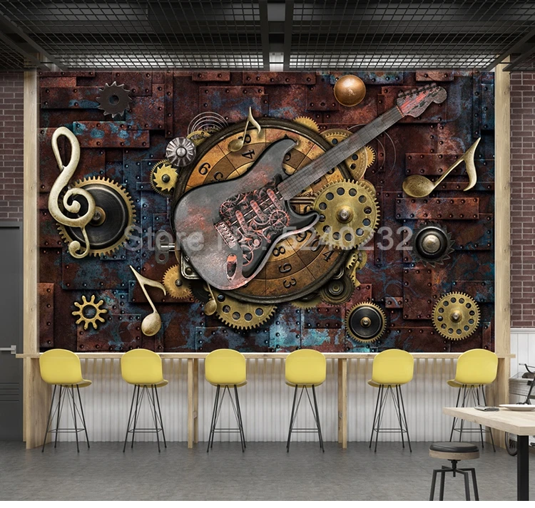 Настенные обои по фото по индивидуальному заказу, 3D Ретро-гитара, музыкальные ноты, бар, KTV, ресторан, кафе, фоновая настенная бумага, настенное 3D искусство