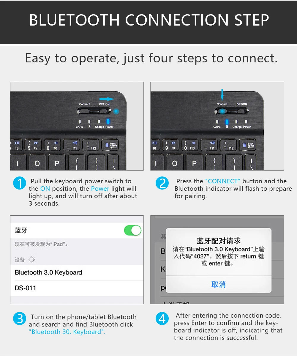 Клавиатура-это только клавиатура с английскими буквами, у нас есть наклейки в виде букв на другом языке, такие как русский, португальский, испанский, немецкий, французский, японский, корейский, тайский, иврит, арабский, португальский, итальянский.Мини Беспроводная bluetooth-клавиатура на ваш мобильный телефон, планшетПоддержка систем IOS, Andriod, Windows