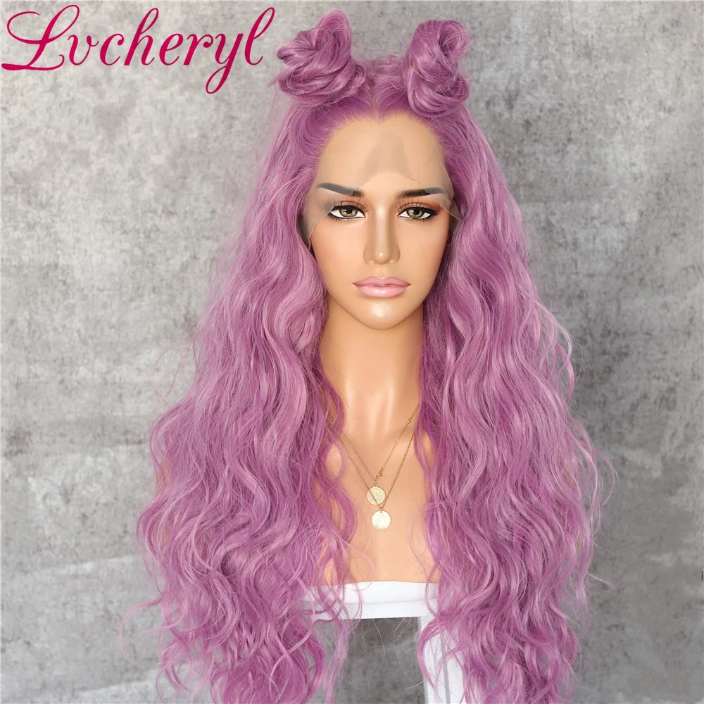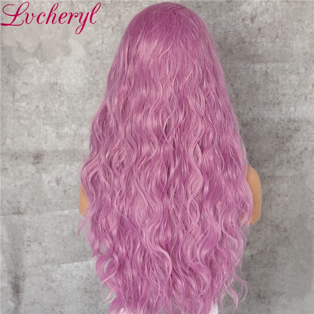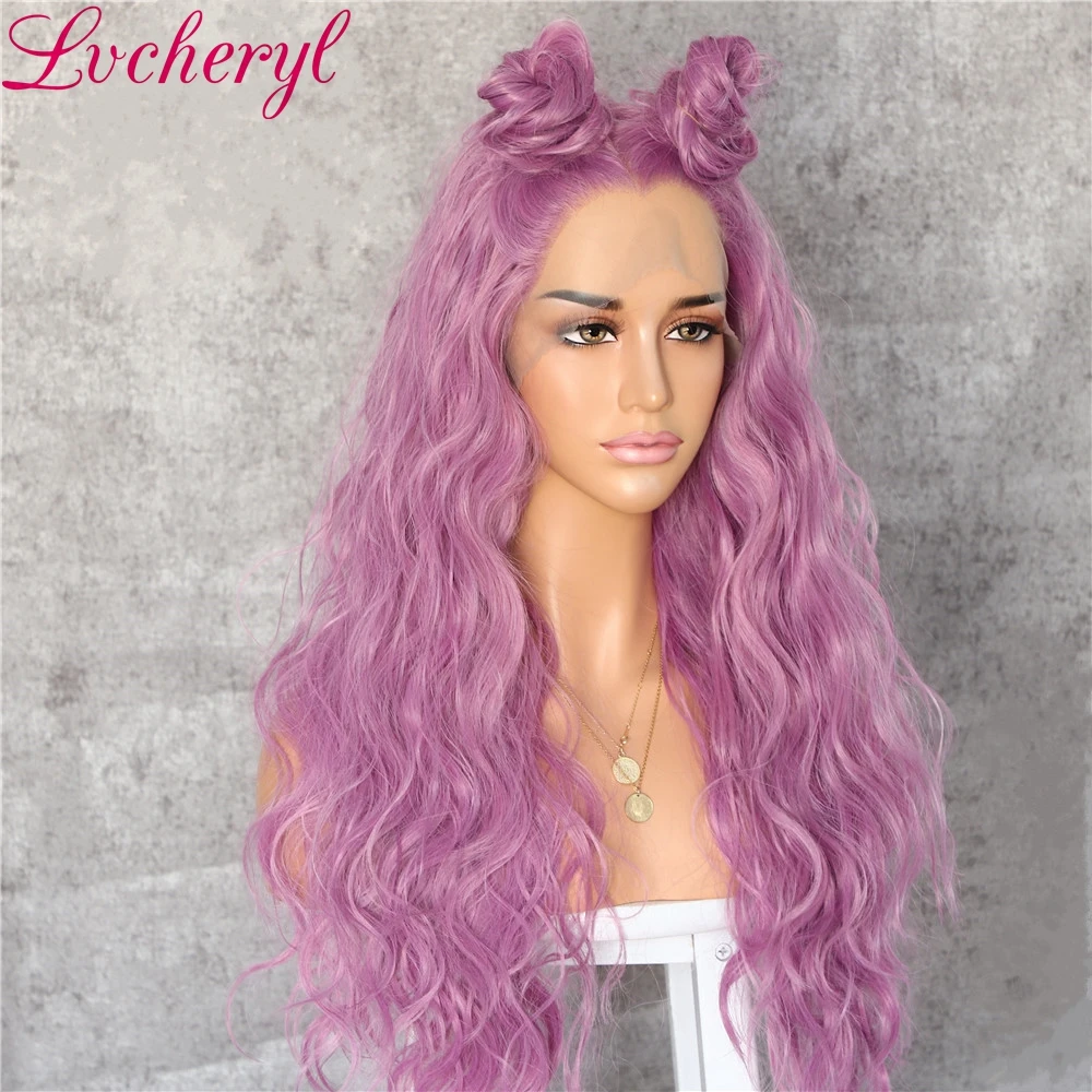 Lvcheryl натуральные длинные волнистые синтетические кружевные передние парики фиолетовый цвет парики для волос термостойкие парики