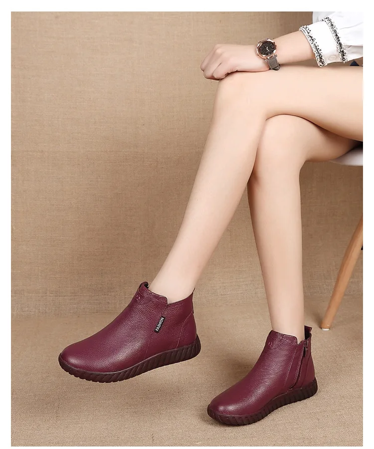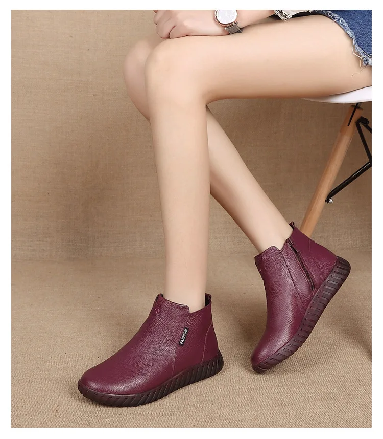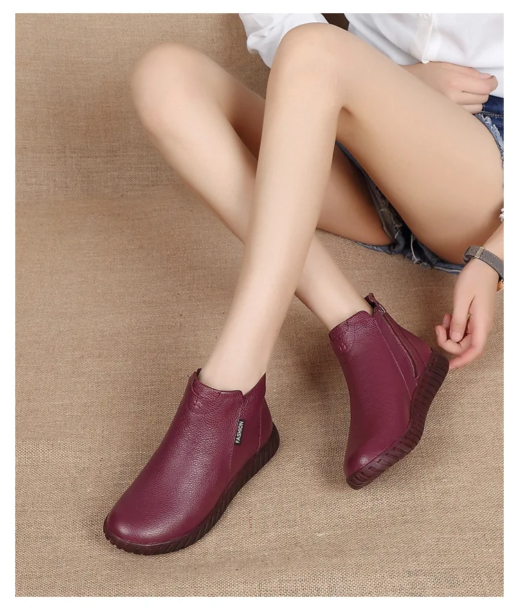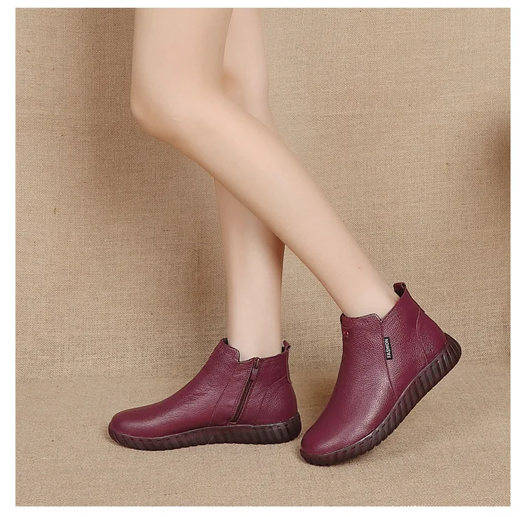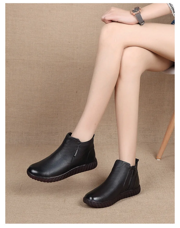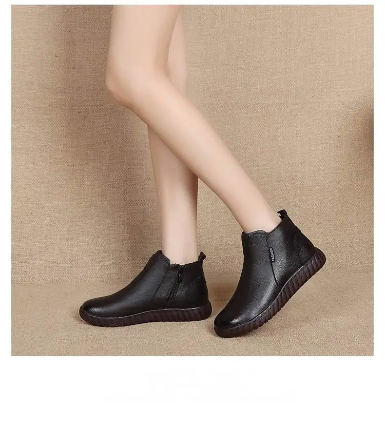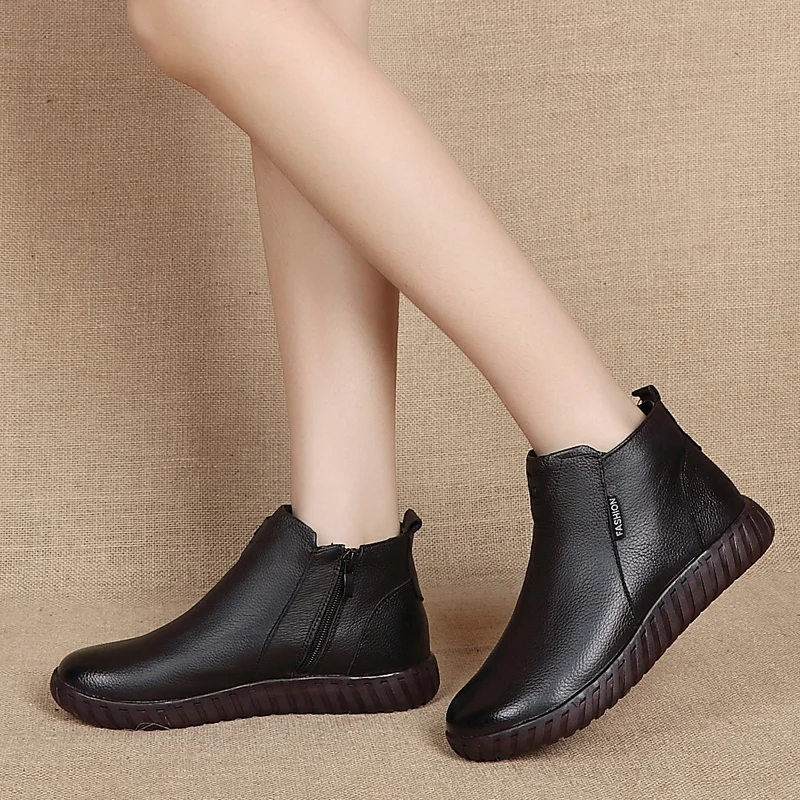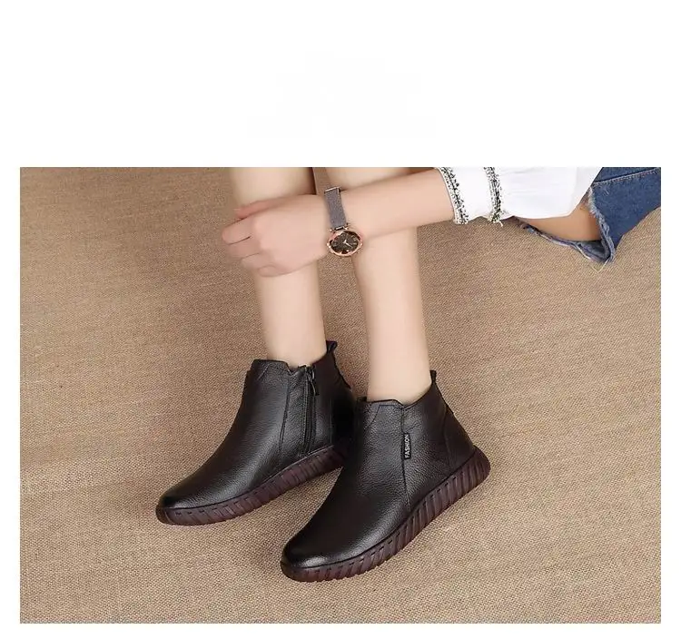 Ботинки женские из натуральной кожи, на плоской подошве, на молнии